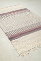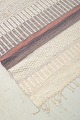 Håndvævet tæppe i ren uld med geometrisk mønster i naturlige nuancer af beige, brun og rødlige toner. En klassisk repræsentant for den skandinaviske tekstiltradition, hvor enkelhed og struktur går hånd i hånd med funktionalitet og varme.