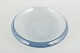 Organisk formet mundblæst skål i lys blå, næsten transparent glas med tykke vægge og blød afrundet form, typisk for skandinavisk glasdesign i perioden.