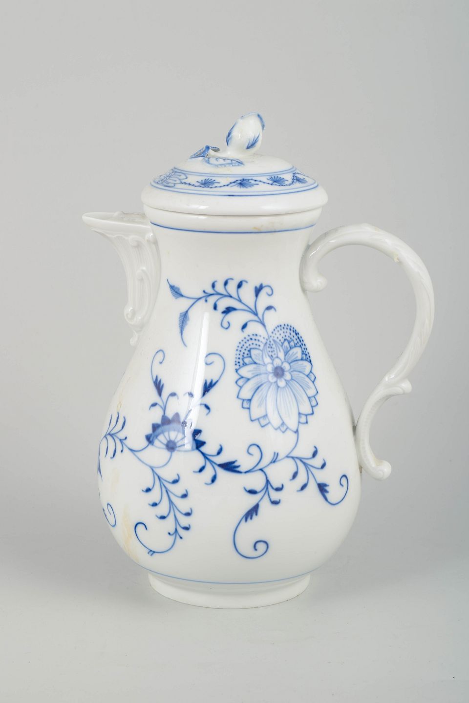 Meissens Zwiebelmuster har været et af Europas mest ikoniske porcelænsmønstre siden 1730’erne. Omkring år 1900 blev mange af de klassiske former videreudviklet, og kaffekander fra denne periode er eftertragtede for deres håndmalede detaljer, kvalitet og tidstypiske elegance.