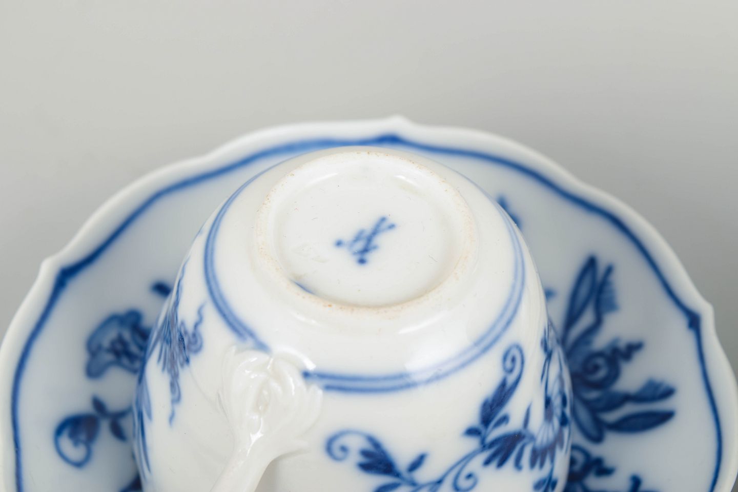 Meissen løgmønstret, fire espressokopper med tilhørende underkopper.