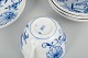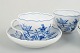Set of four Meissen coffee cups with matching saucers in the classic Zwiebelmuster (Blue Onion) pattern.