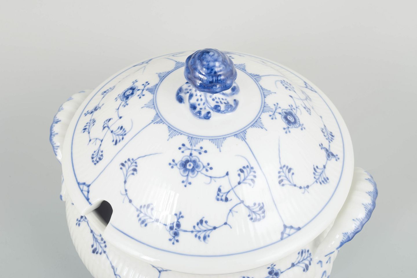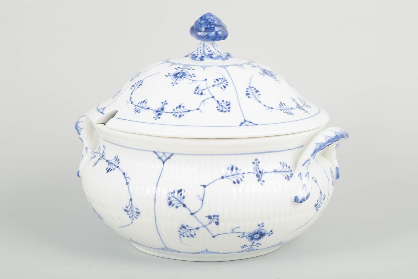 “Blue Fluted Plain” was introduced in 1775 and remains Royal Copenhagen’s most iconic pattern. Large serving pieces from early production, such as this soup tureen, are especially sought after for their craftsmanship, scale, and decorative impact.