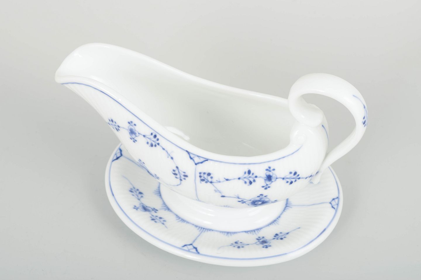 Med separat underfad, elegant svungen hank og håndmalet koboltblå dekoration på riflet korpus.
