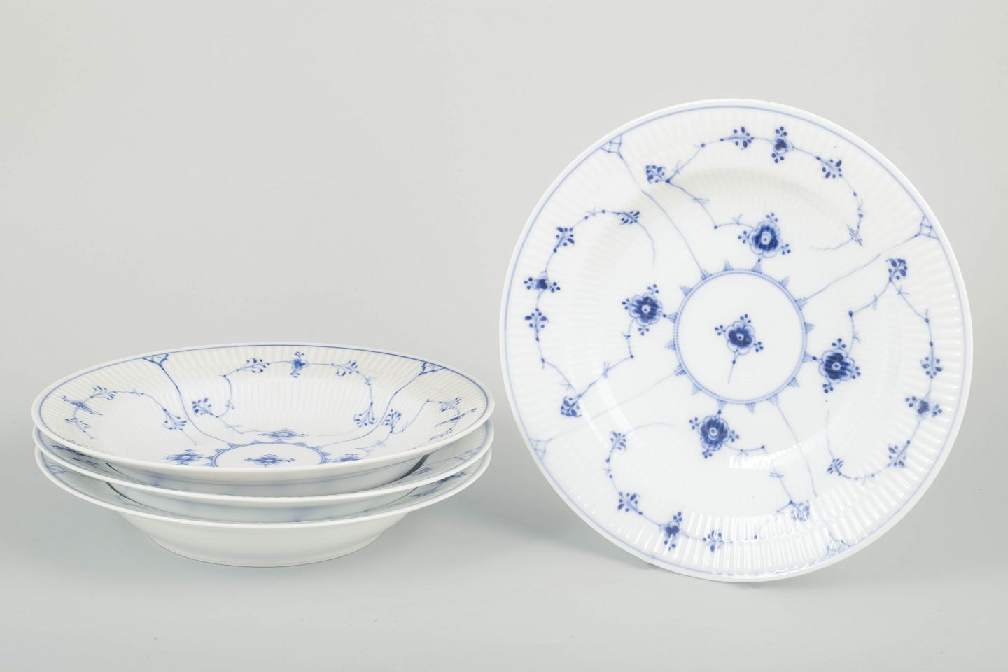 Set of four deep plates in classic Blue Fluted porcelain with hand-painted blue decoration and a fluted body.