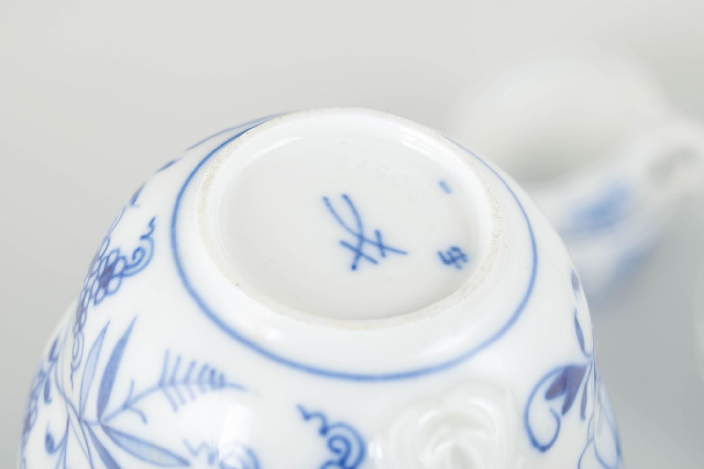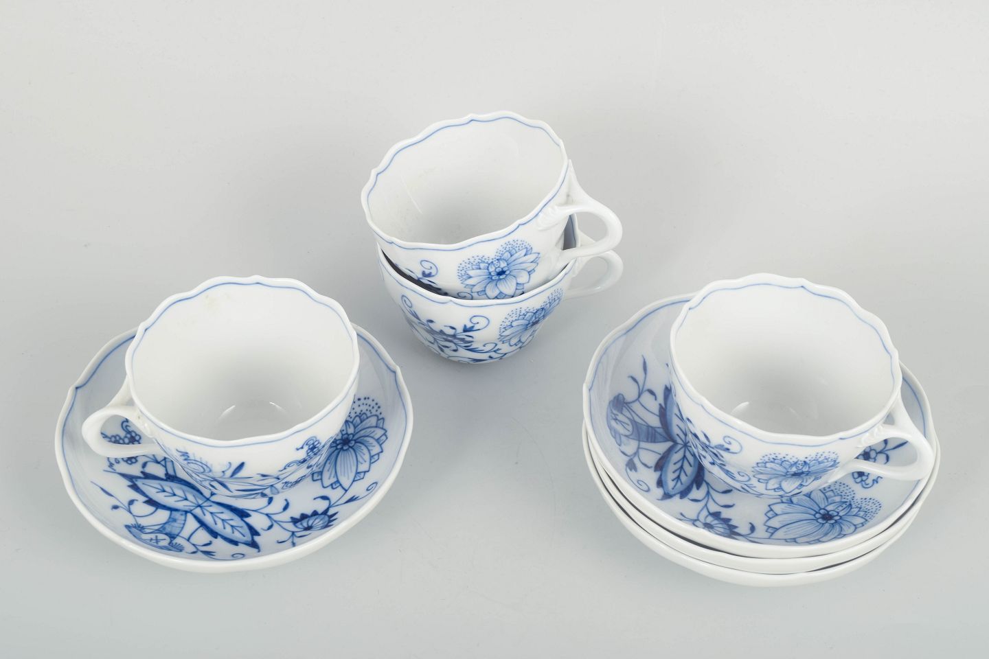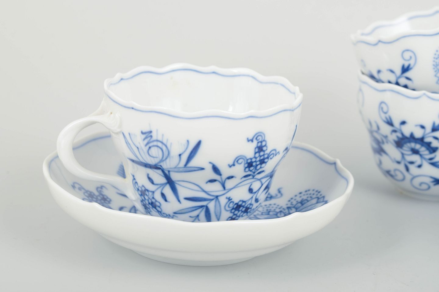 Meissen – “løgmønstret” sæt af fire kaffekopper med underkopper, midt 1900-tallet.