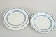 Sæt af salattallerkener i fajance med enkel, rund form og diskret dekoration i blå linjer på lys bund. Tallerkenerne er udført i Gustavsbergs “Dart”-serie, kendetegnet ved sit stringente og grafiske udtryk, som er typisk for Stig Lindbergs produktion i perioden.