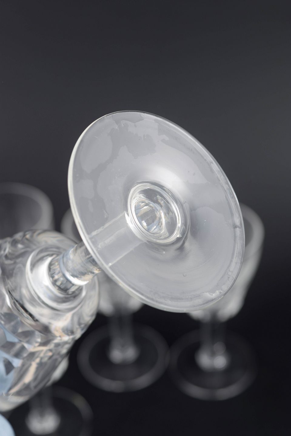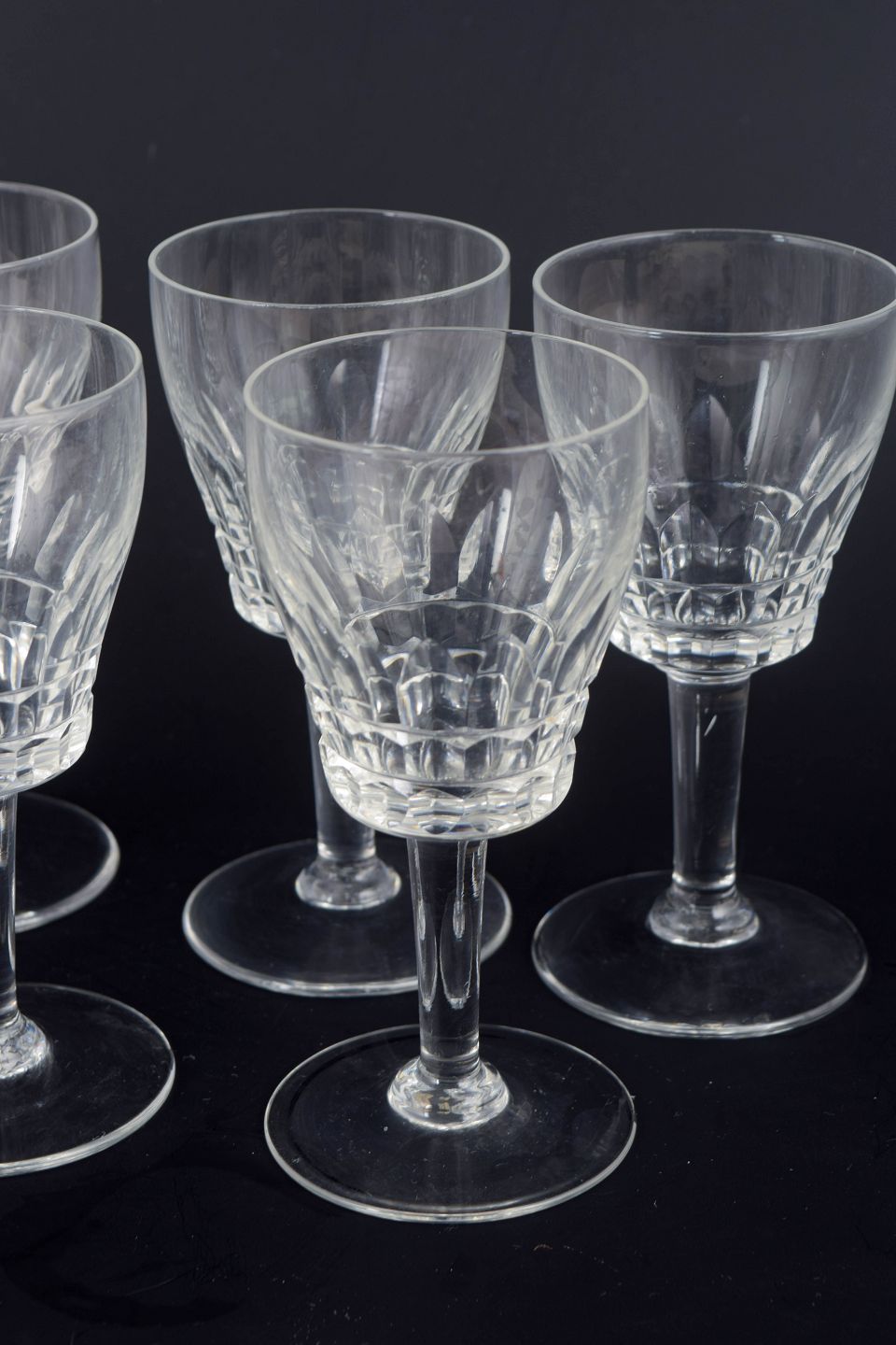Mid-20th-century French crystal glassware is often defined by precise cutting and well-balanced proportions, using facets and flat planes to emphasise clarity and sparkle. Smaller port glasses were a staple of formal table settings and home bars, and remain highly collectible today for their timeless elegance.
