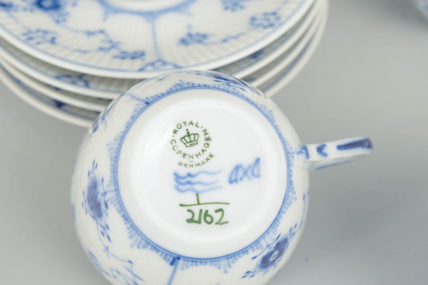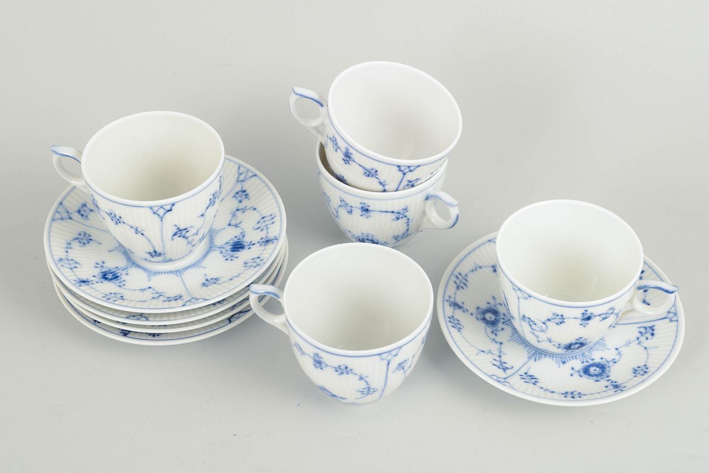 Royal Copenhagen, Musselmalet riflet kaffekopper med tilhørende underkopper, sæt på 5 par.