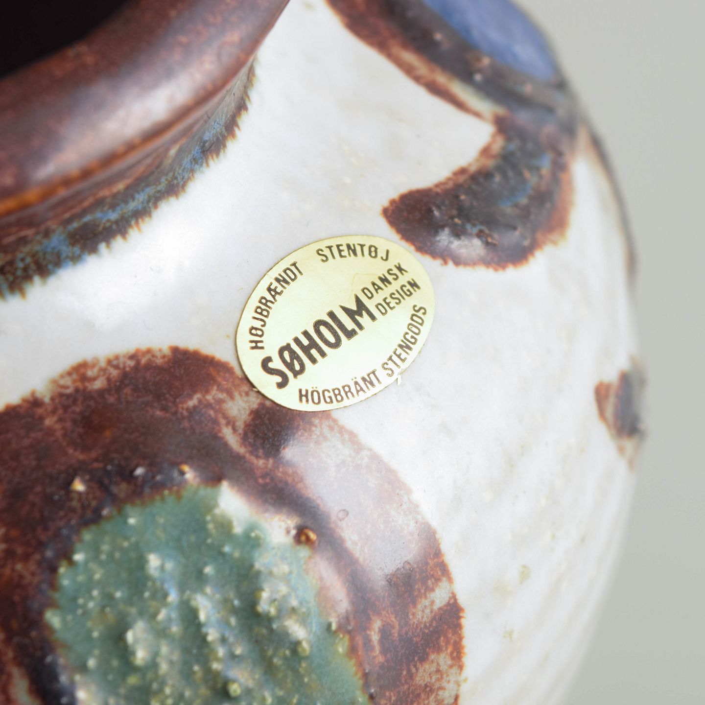 Søholm Stentøj blev grundlagt på Bornholm i 1835 og udviklede sig i det 20. århundrede til et af Danmarks mest markante keramikværksteder. Fabrikken er især kendt for sit robuste stentøj, rige glasurarbejde og tydelige, hånddekorerede formsprog. Søholm havde sin storhedstid fra 1950’erne til 1970’erne og lukkede i 1996, men værkerne er fortsat højt værdsatte samlerobjekter.