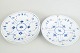 Sæt på 4 middagstallerkener i hvidt porcelæn med håndmalet koboltblå musselmalet riflet dekoration. Model 1/175.