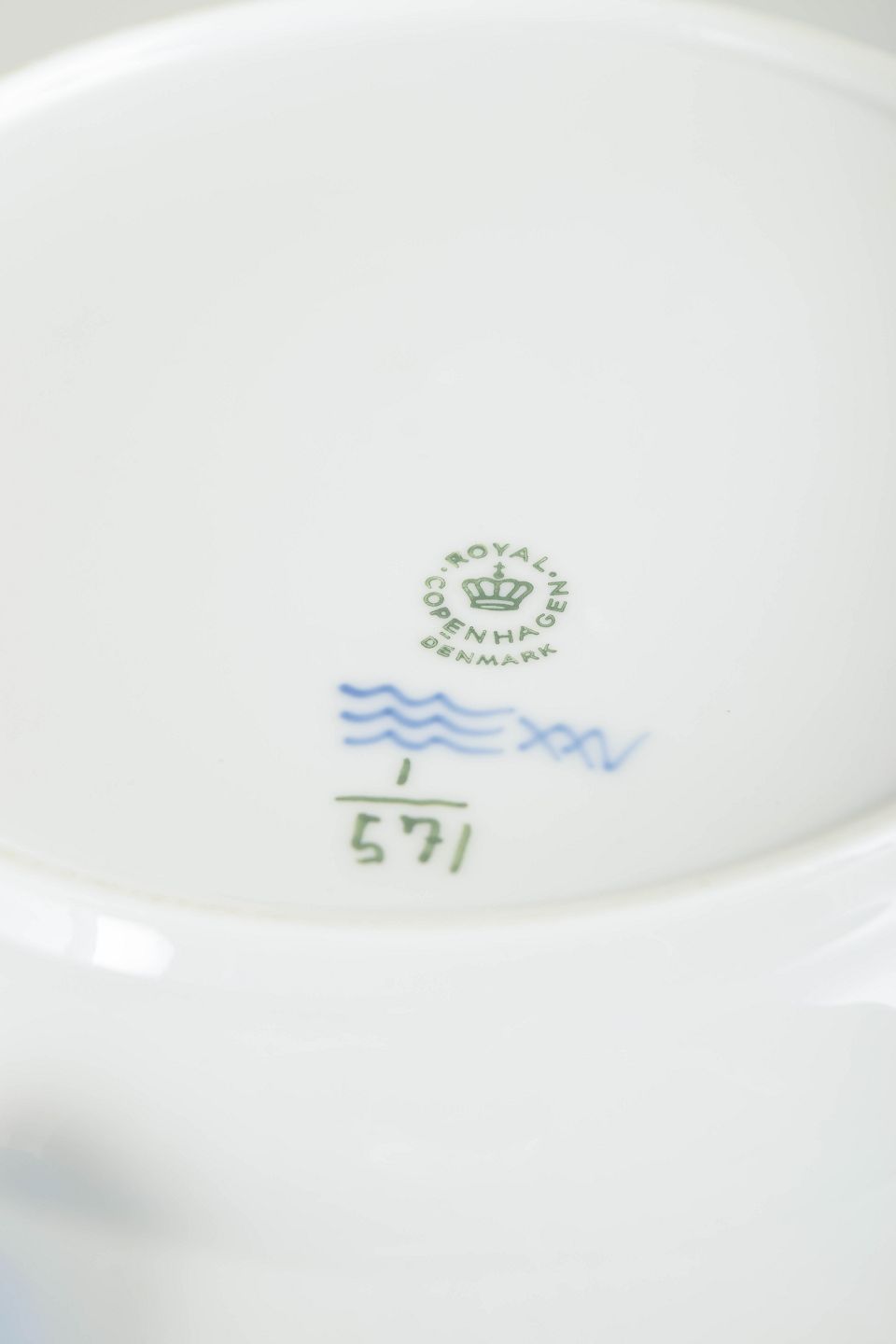 Royal Copenhagen blev grundlagt i 1775 i København under kongelig bevilling. Fabrikken er internationalt anerkendt for sit håndmalede porcelæn og sit høje kunstneriske niveau. Musselmalet Halvblonde er en variation af det klassiske Musselmalet stel og kombinerer riflede flader med en dekorativ blondekant, udført med stor håndværksmæssig præcision.