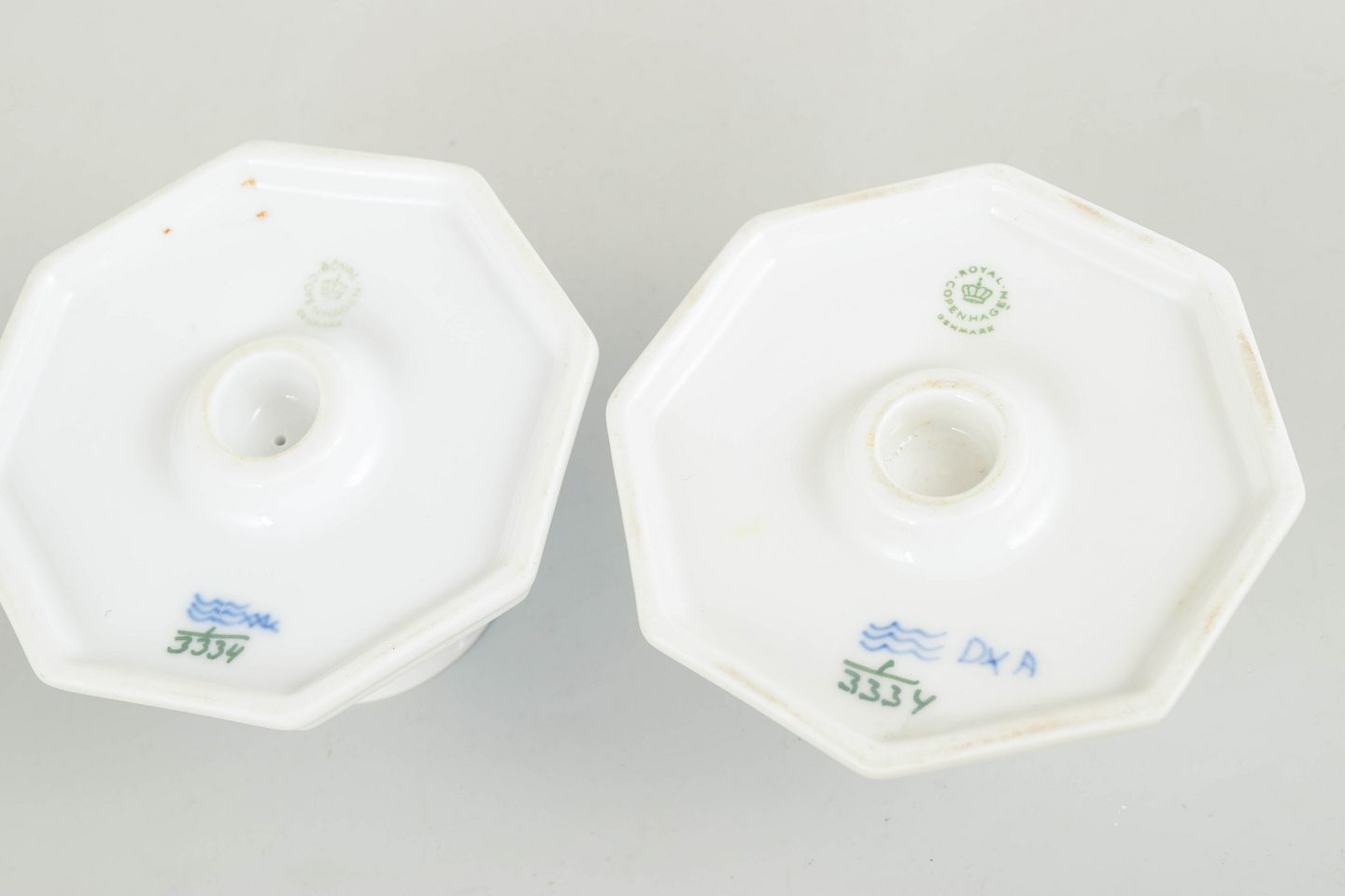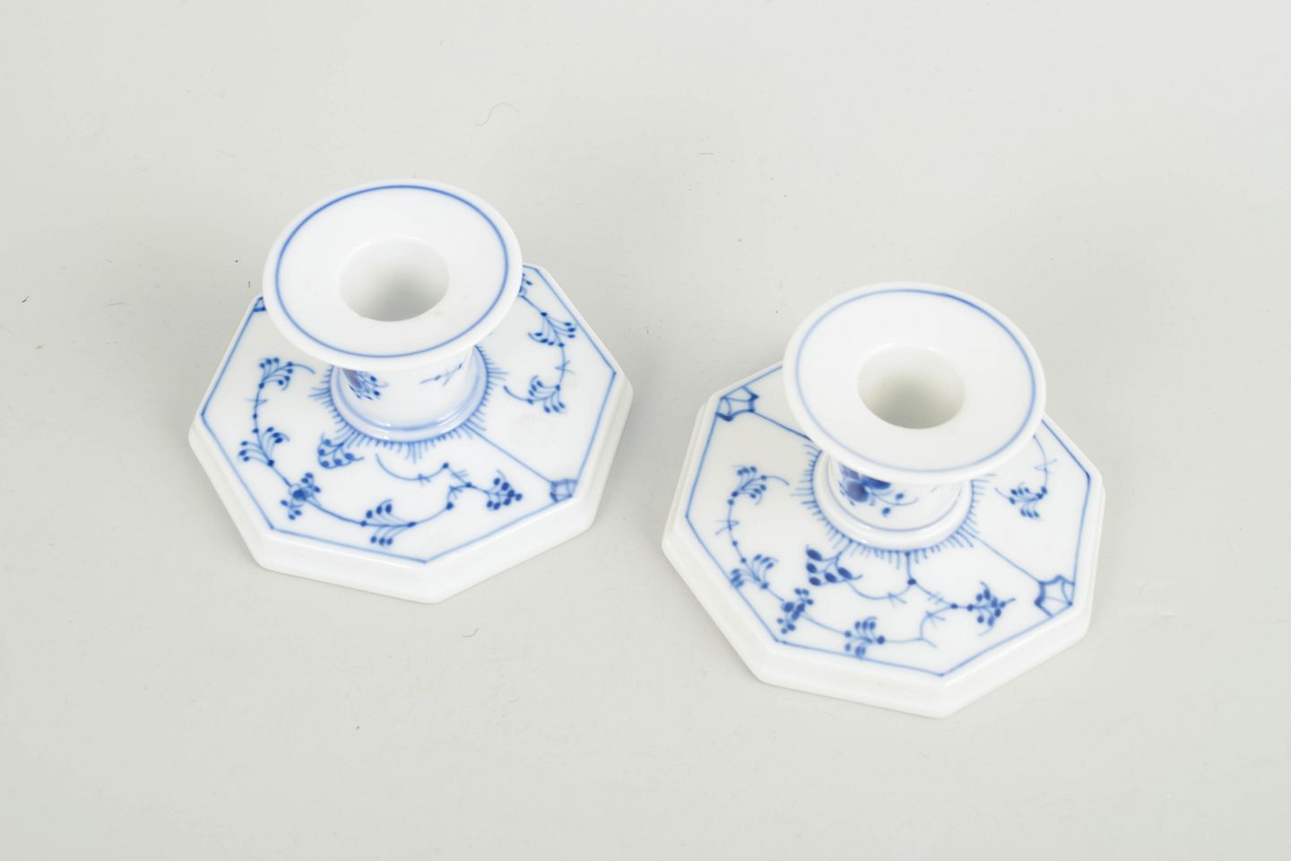 Royal Copenhagen Blue Fluted Plain, a pair of candlesticks.