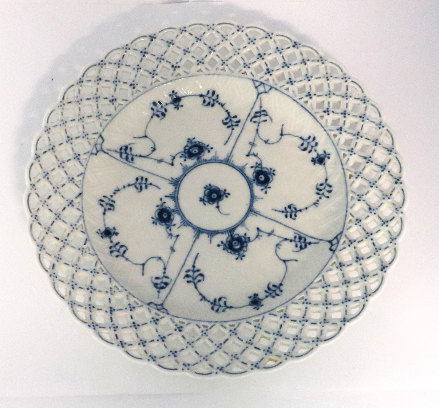 Royal Copenhagen. Blue Fluted Full Lace. Flat plate with open-work border. Model 1098. Diameter 25,5 cm. (4 quality).