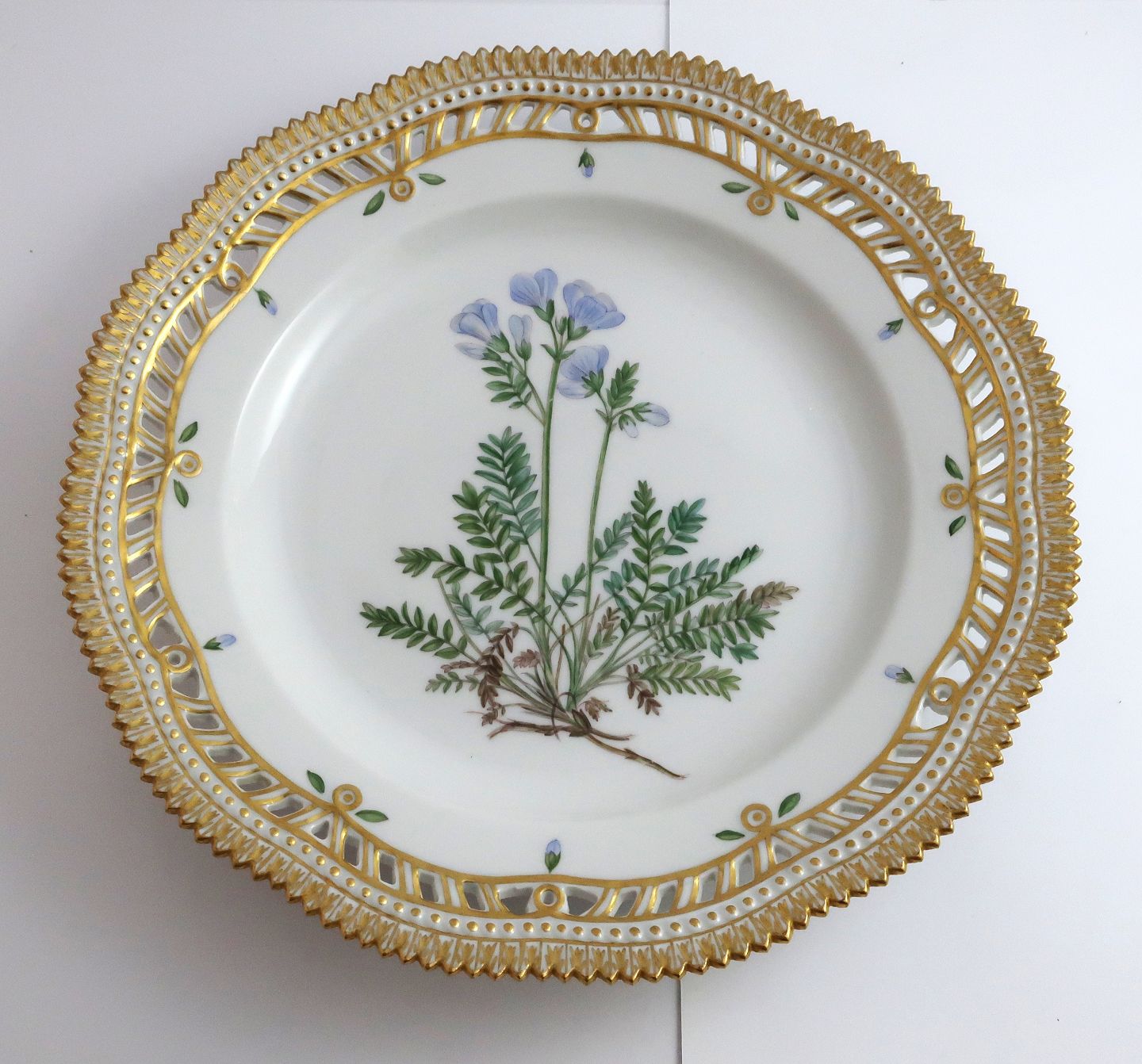 Royal Copenhagen. Flora Danica tallerken med gennemskåret bort. Diameter 25 cm. Model 3553. ( 1 sortering ). Polemonium humile Willd