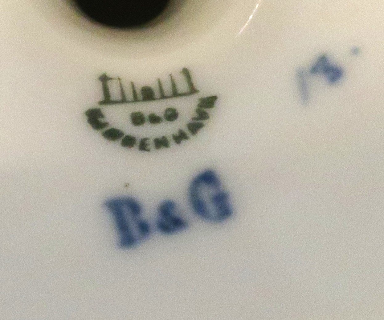 Bing & Grøndahl. Sommerfugl med guld. Kageskål på fod. Højde 14,5 cm. Diameter 20,5 cm. (1 sortering)