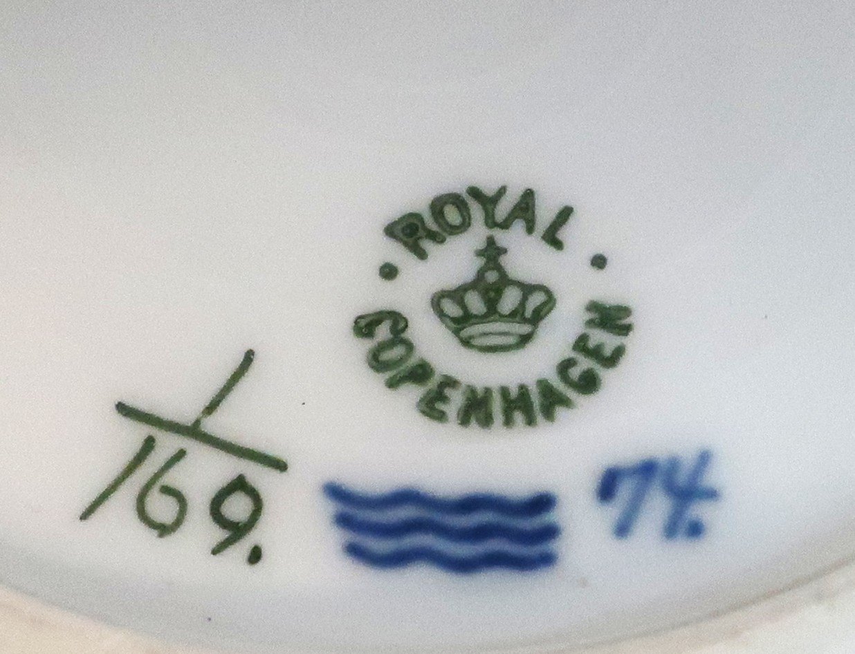 Royal Copenhagen. Musselmalet, riflet. Lille dyb dessert tallerken. Model 169. Diameter 19,5 cm. (1 sortering)