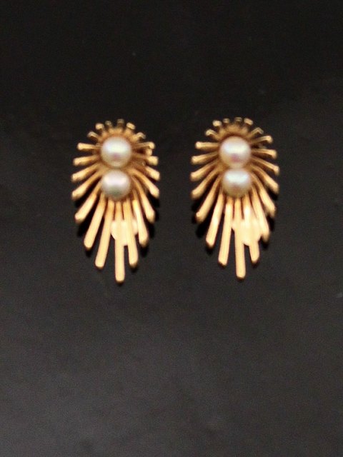 14 karat guld øreclips 2,2 x 1,2 cm. med ægte perler stemplet 585 BH for hofjuveler B Hertz København emne nr. 627018