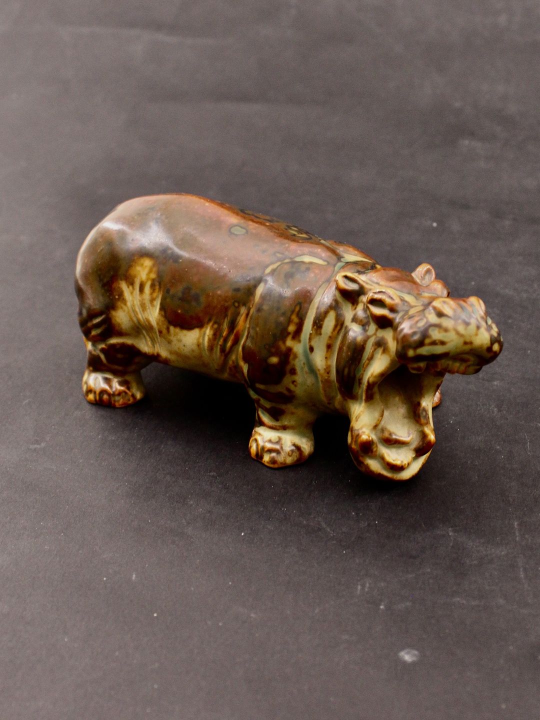 Royal Copenhagen stentøj 20239 lille sung glaseret flodhest 6,5 x 16 cm Signeret KK emne nr. 628586