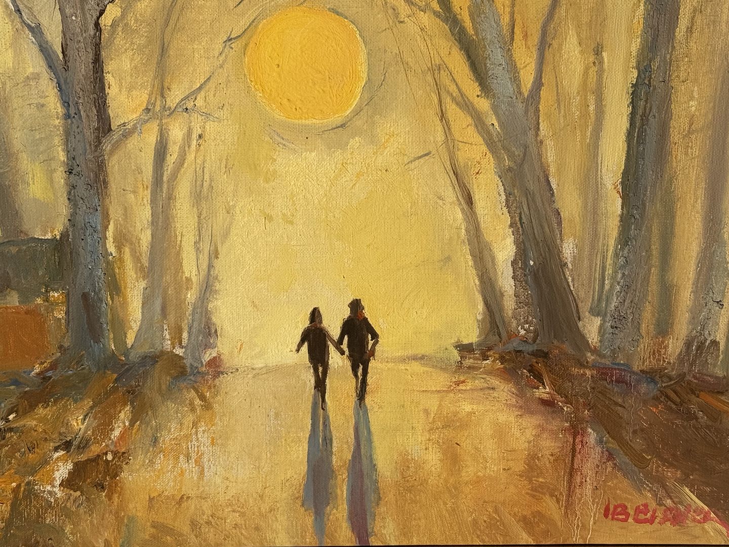 Ib Eisner, The Boys in the Deer Park Winter Sun, Oil painting on canvas, 40x34cm without frame, 59x53cm with frame *Good condition*