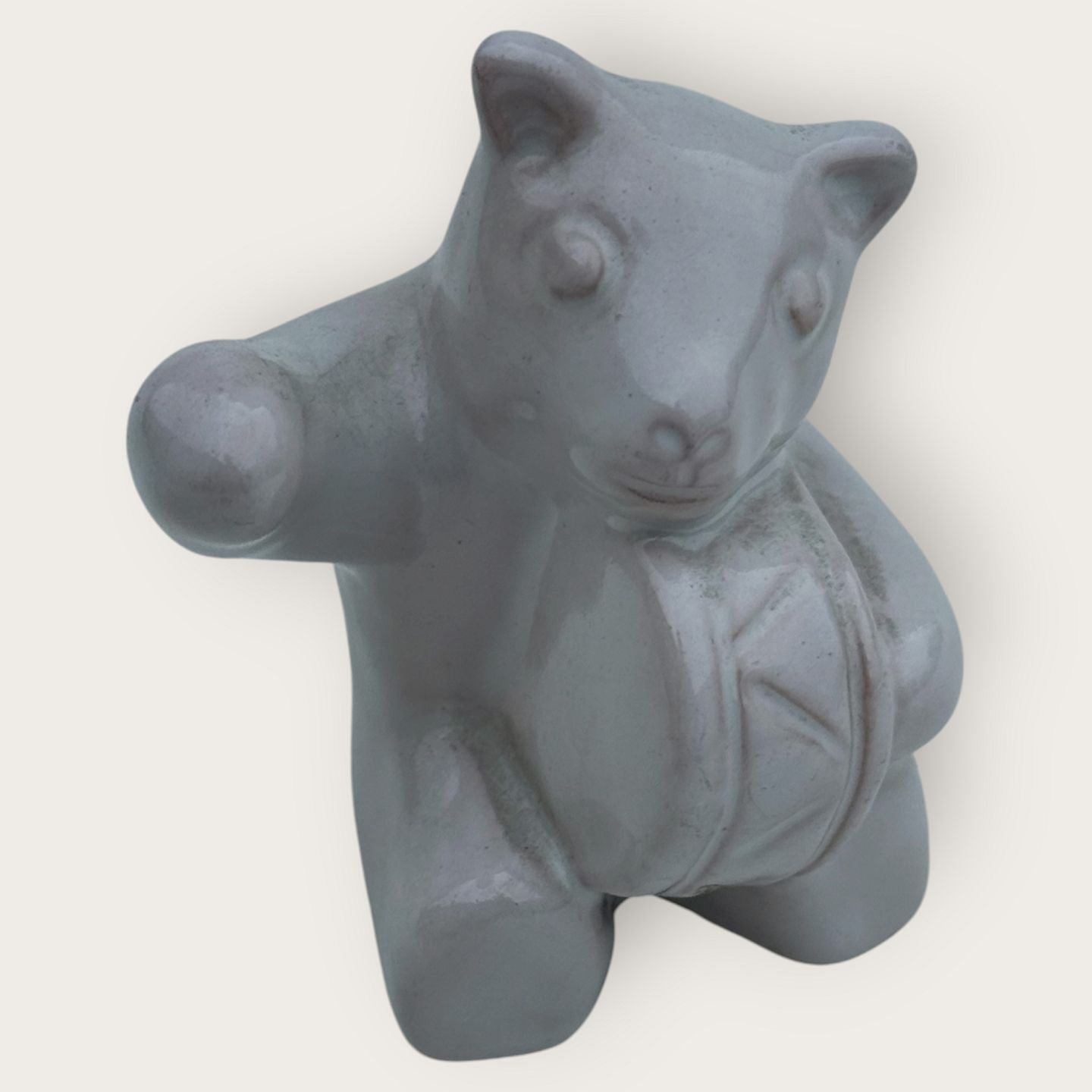 Bornholm pottery, Hjorth, Bear orchestra, Drum, bear with white glaze, approx. 6.5x5.5cm *Good condition*
