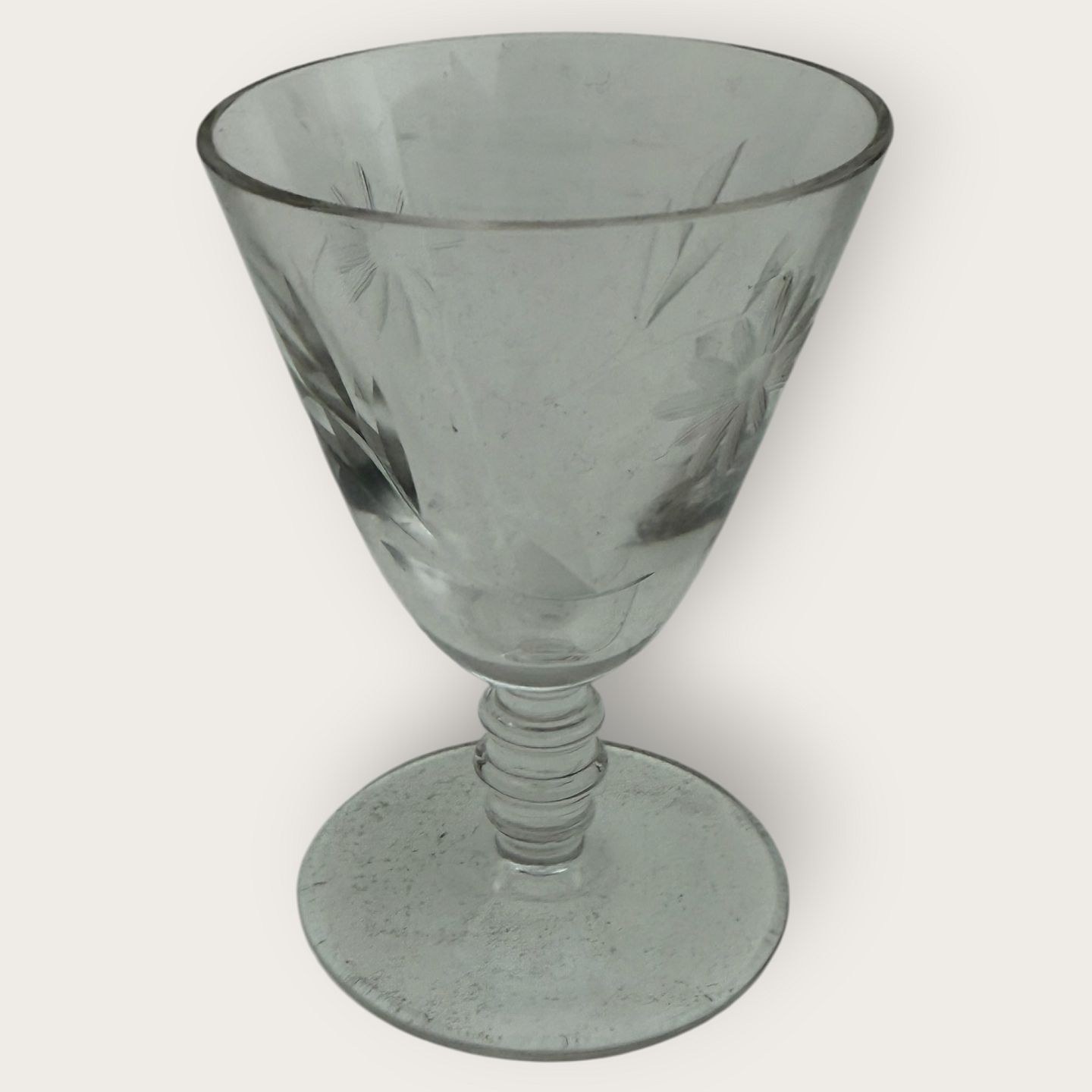 Port wine glass with flower cuts, 8 cm high, 6 cm in diameter *nice condition*
