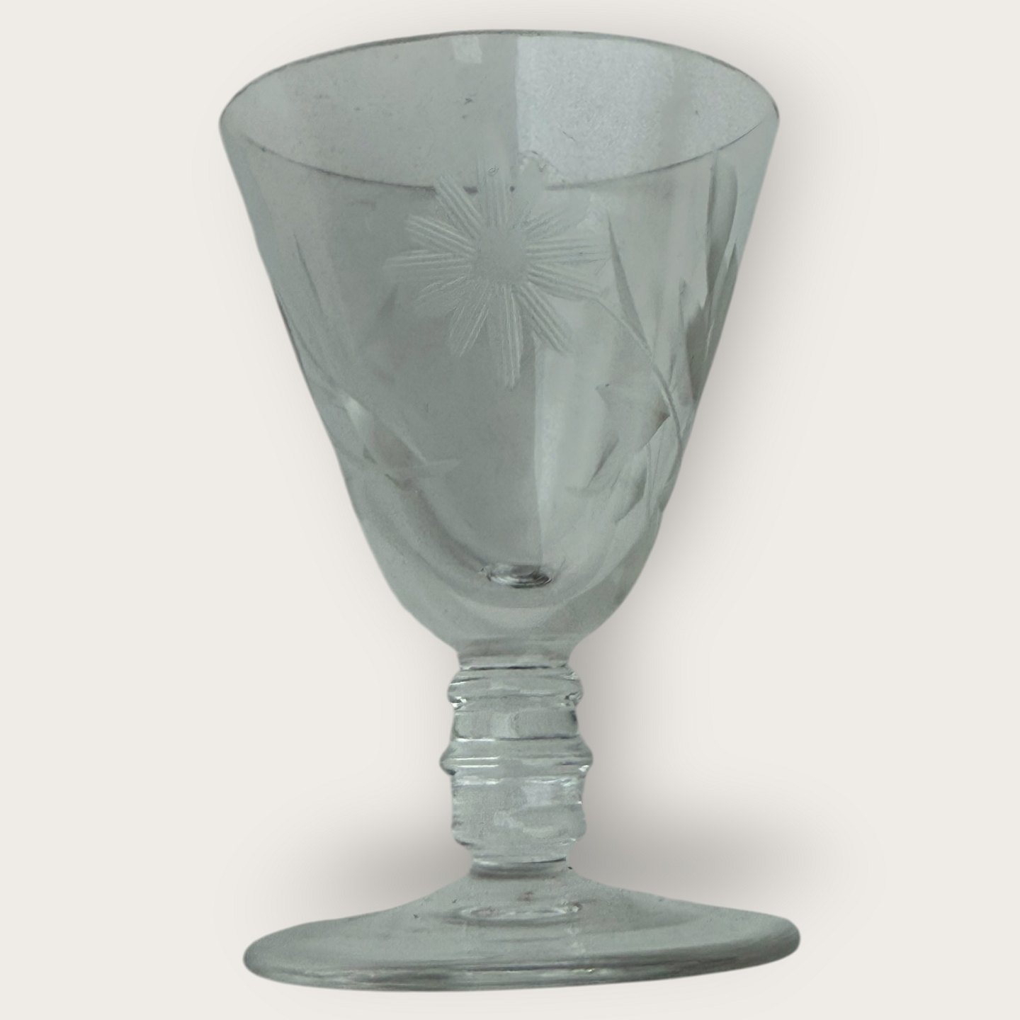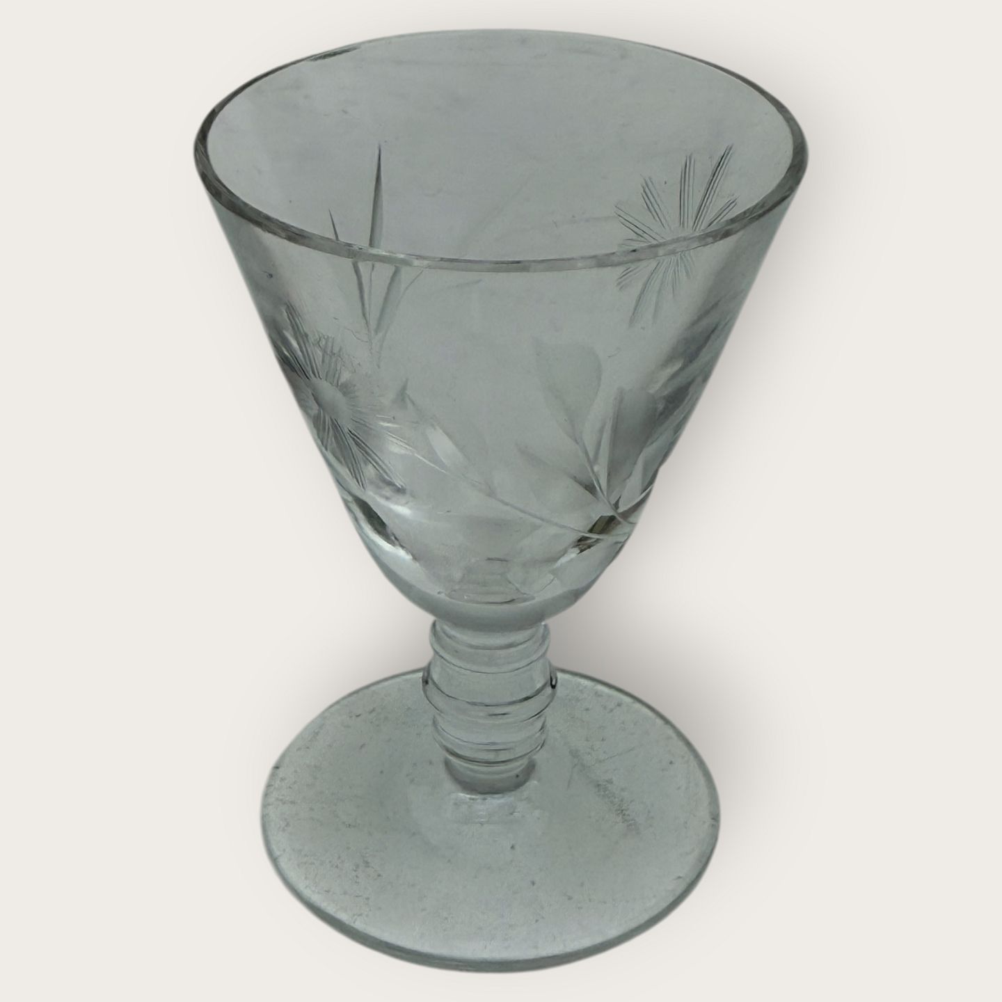 Schnapps glass with flower cuts, Height 6.5cm, diameter 4.5cm *nice condition*