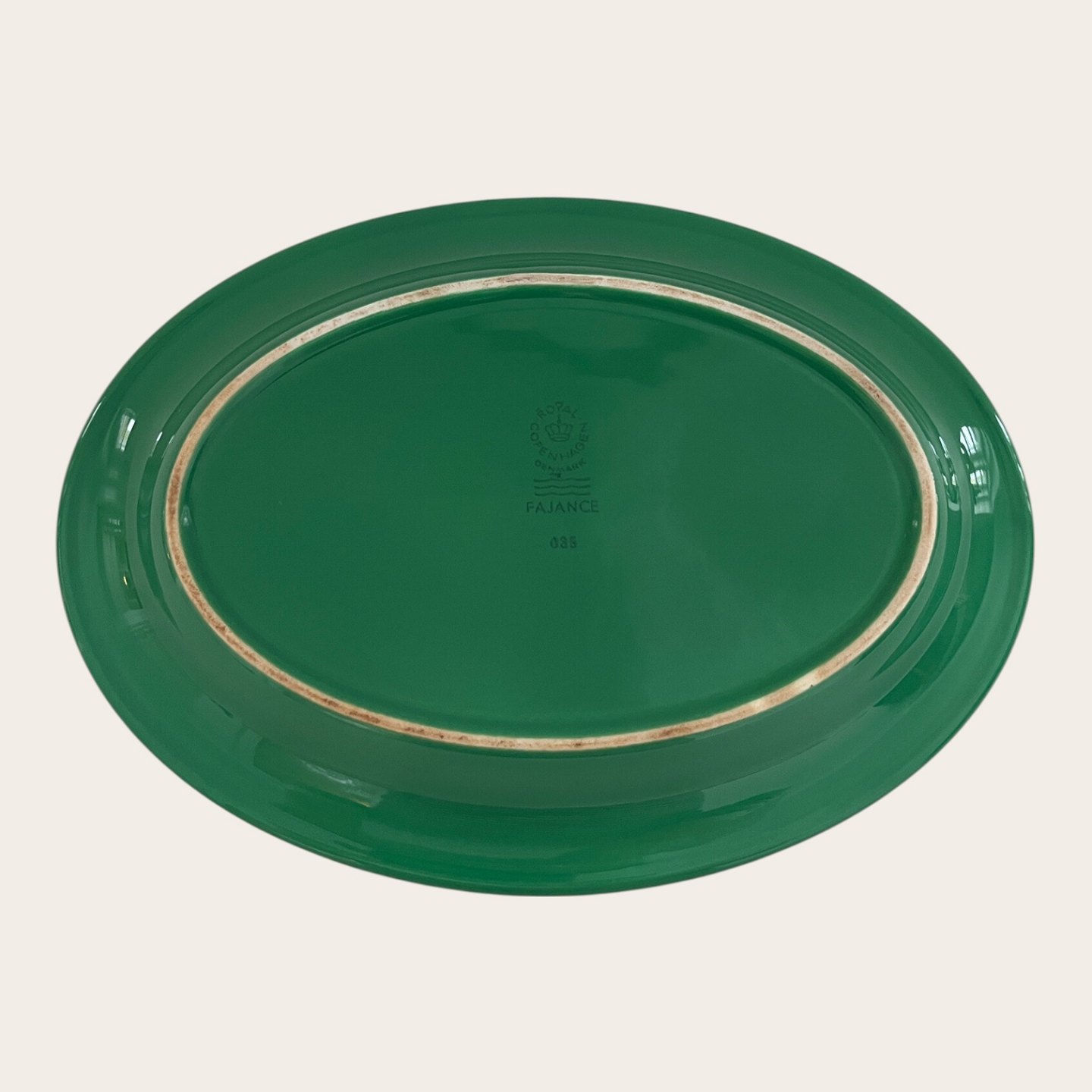 Royal Copenhagen, Aluminia, Plate #085, Green, 22cm long, 16cm wide, Design Ursula Munch Petersen *Good condition with light signs of wear*