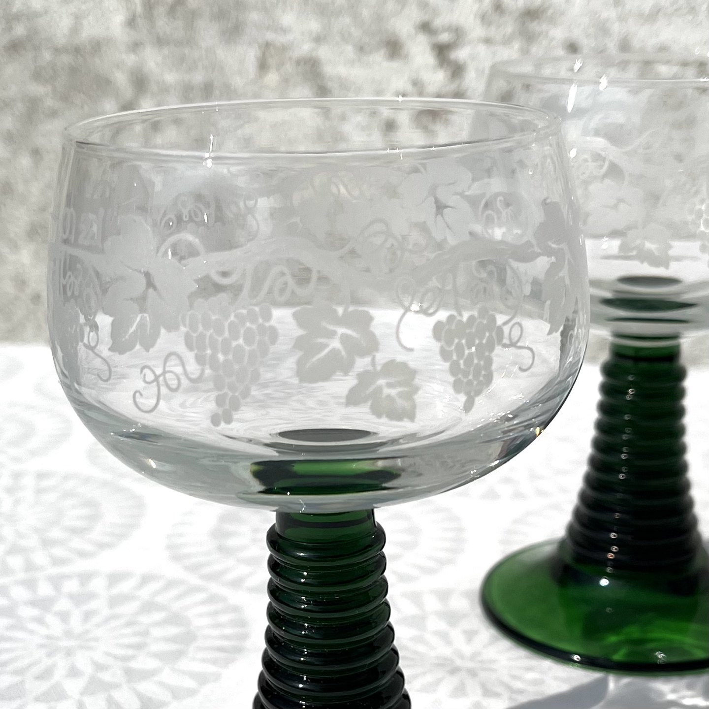 Französischer „Rømerglas“ Rotwein, 8 cm Durchmesser, 13,5 cm hoch, Mit Trauben & Blättern * Perfekter Zustand *