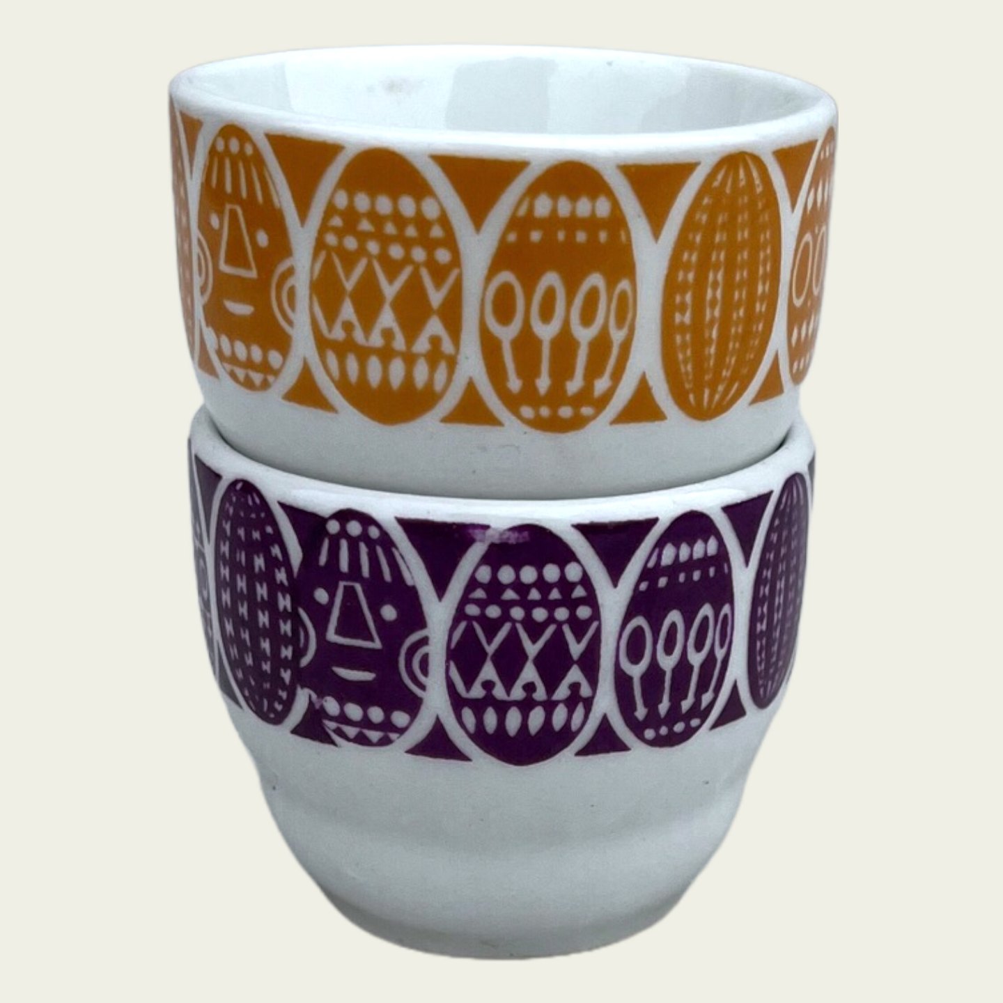 Arabia, Wunderschöner Eierbecher, Lila und Orange, 4,5 cm Durchmesser, 4,5 cm hoch *Guter Zustand*