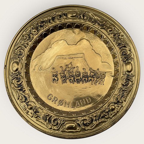 Plakette mit einem Bild der Solvognen und der Inschrift: Solvognen anno 1000 B.C. Trundholm, Odsherred. Gewicht 7,5 kg, Durchmesser 40,5 cm