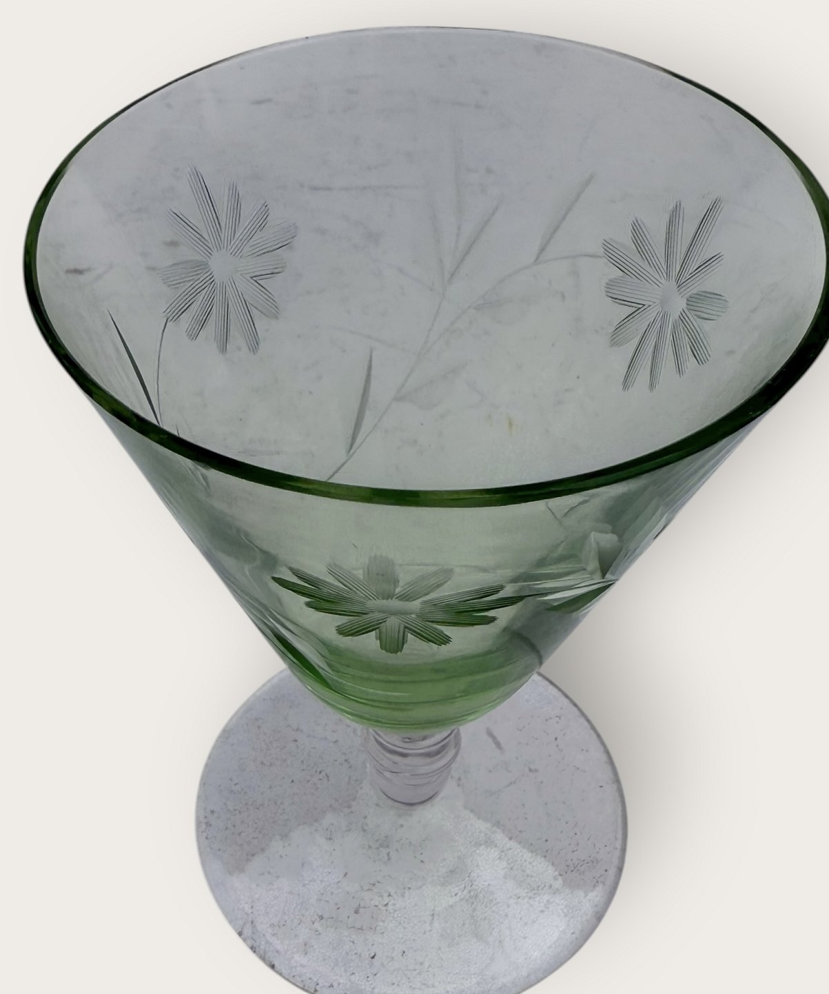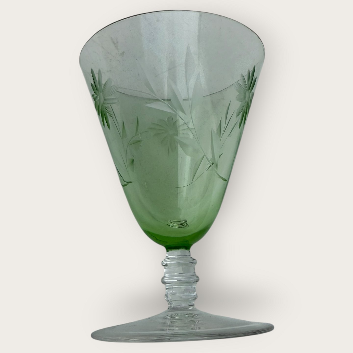 Grüne Weißweingläser mit Blumenmuster, Höhe 10,5 cm, Durchmesser 7,5 cm *guter Zustand*