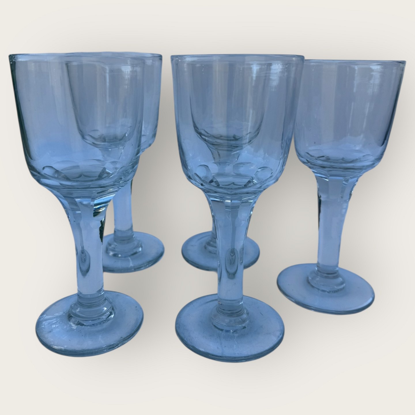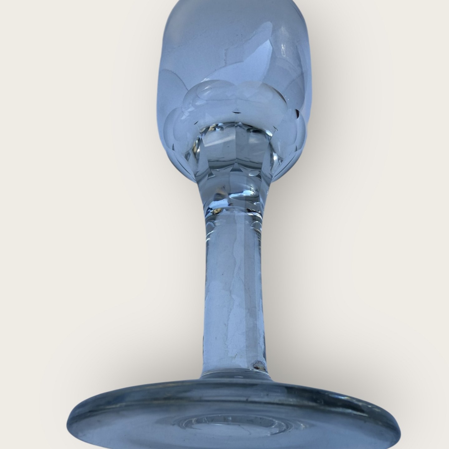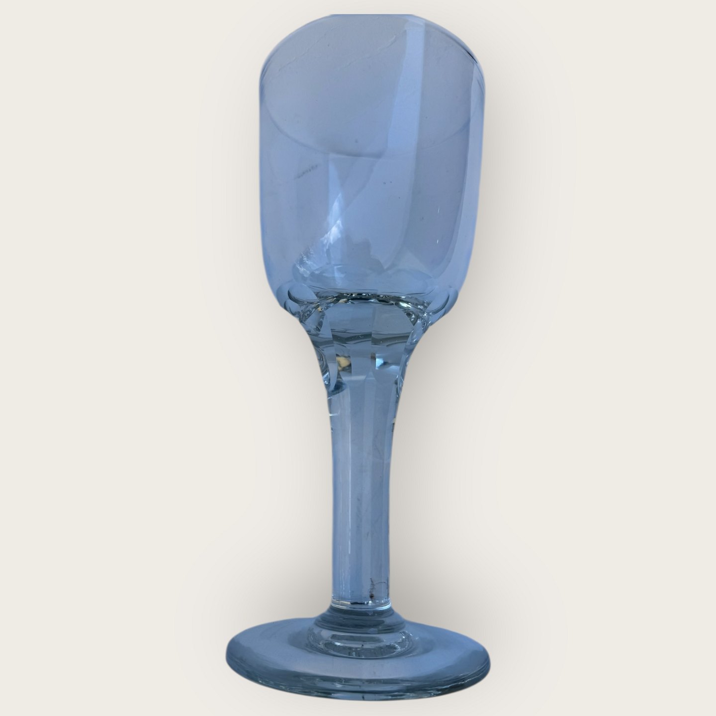Høje ældre glas med slebet stilk, bred kumme og i kraftigt glas, højde 21,3cm, diameter 9cm