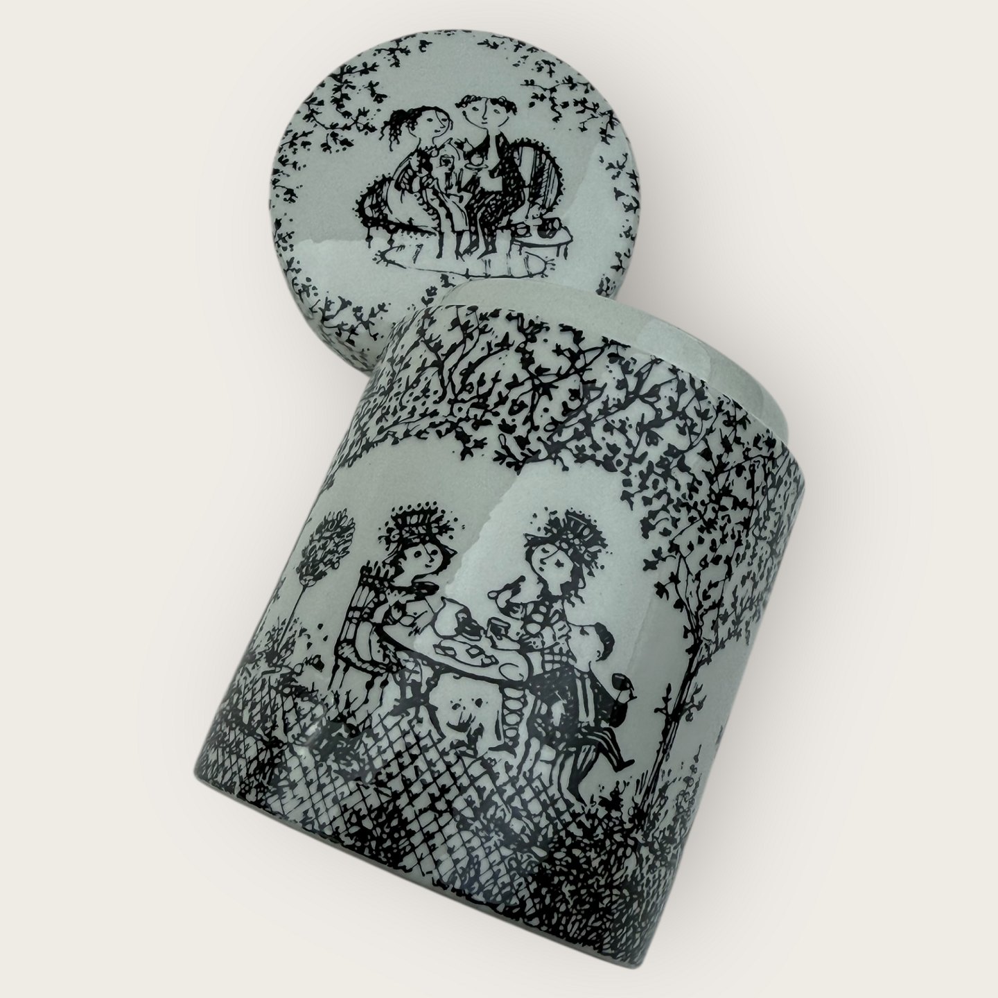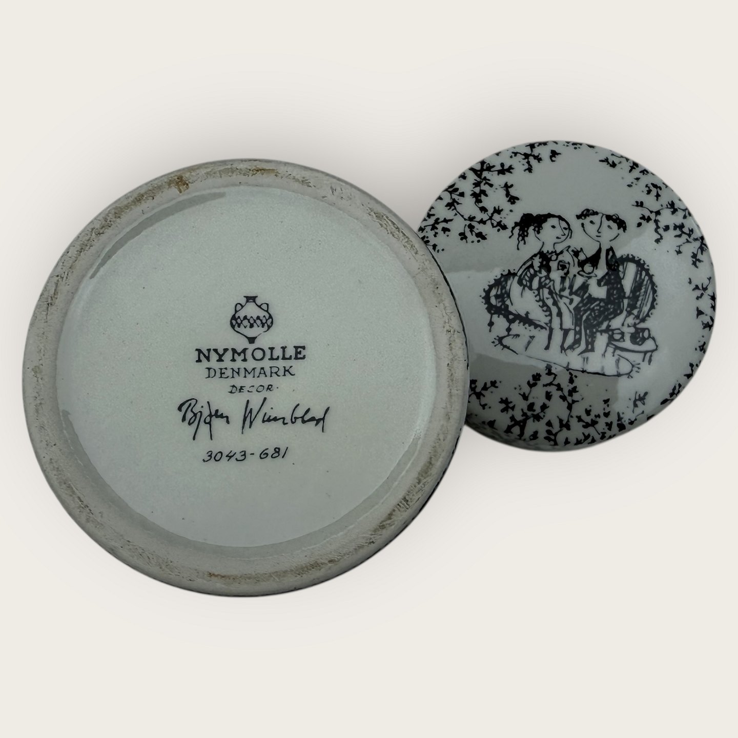 Bjørn Wiinblad, Ny mølle keramik, Lille krukke med låg, Nr. 3043 - 681, Højde 10cm, diameter 7,5cm*fin stand*