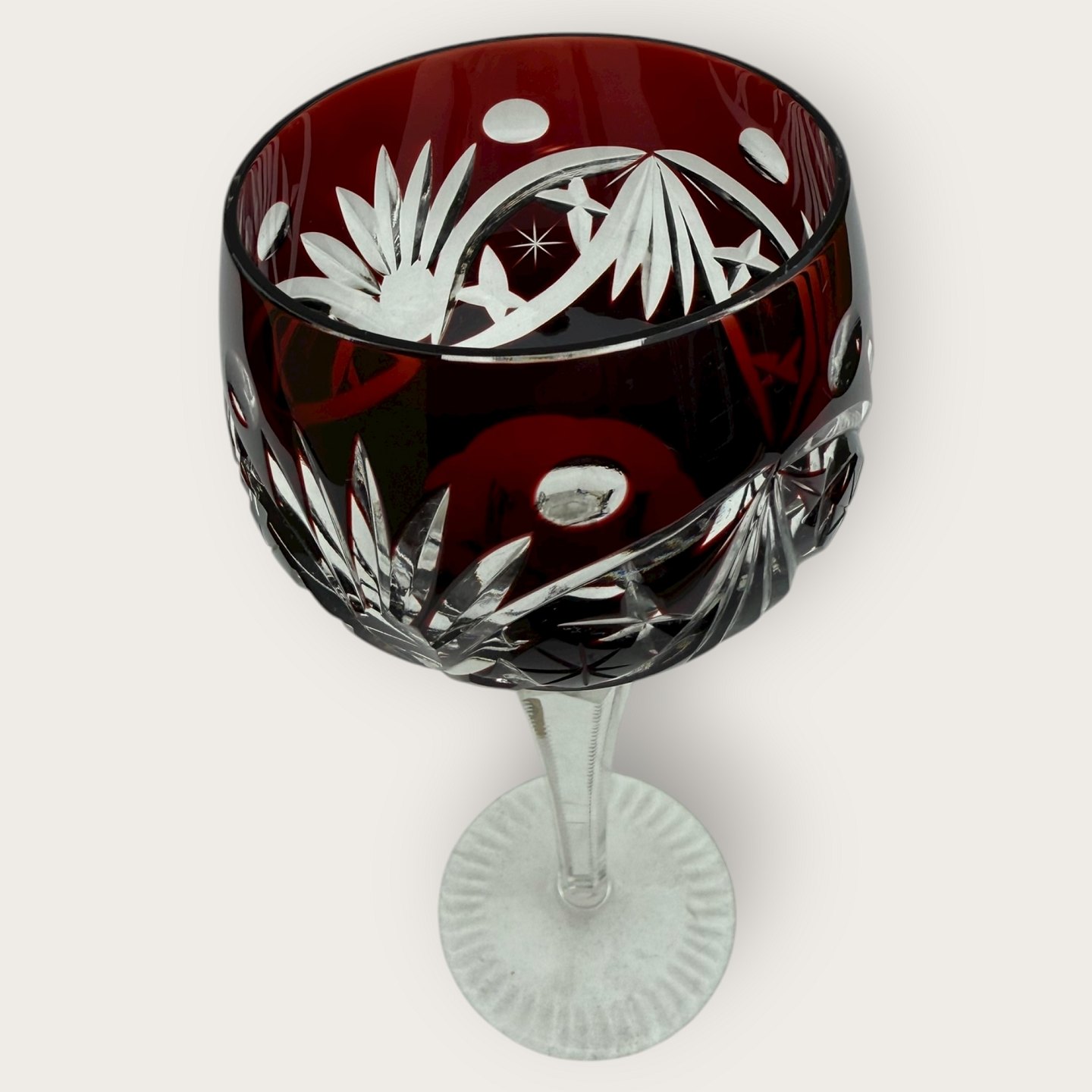 Bøhmisk krystal glas, Vin glas med slibninger, Bordeaux, 19,5cm høj, 8,5cm i diameter *Perfekt stand*