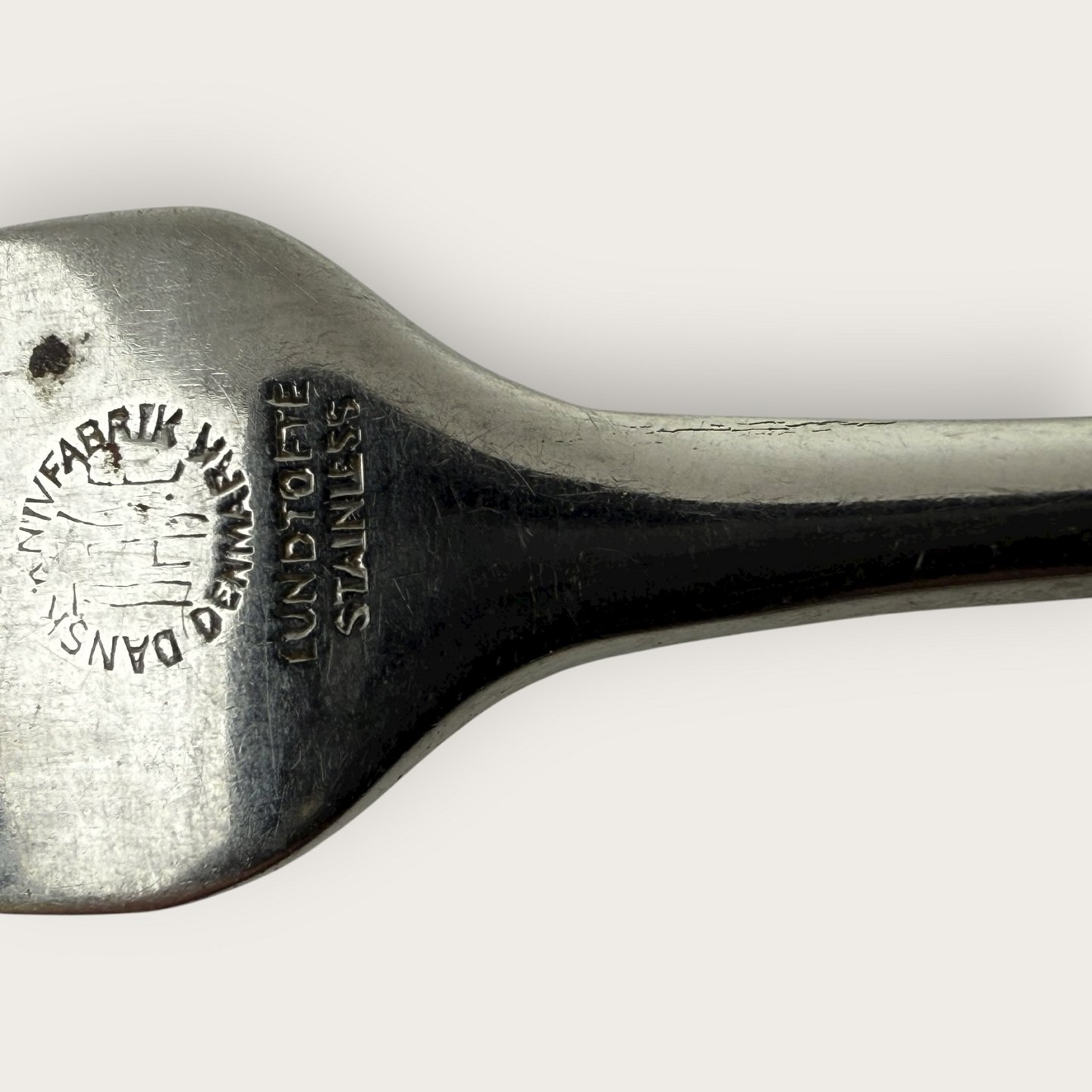 Lundtofte, pålægsgaffel i teaktræ og rustfrit stål fra 1960'erne, 14,5cm lang * pæn brugt stand*