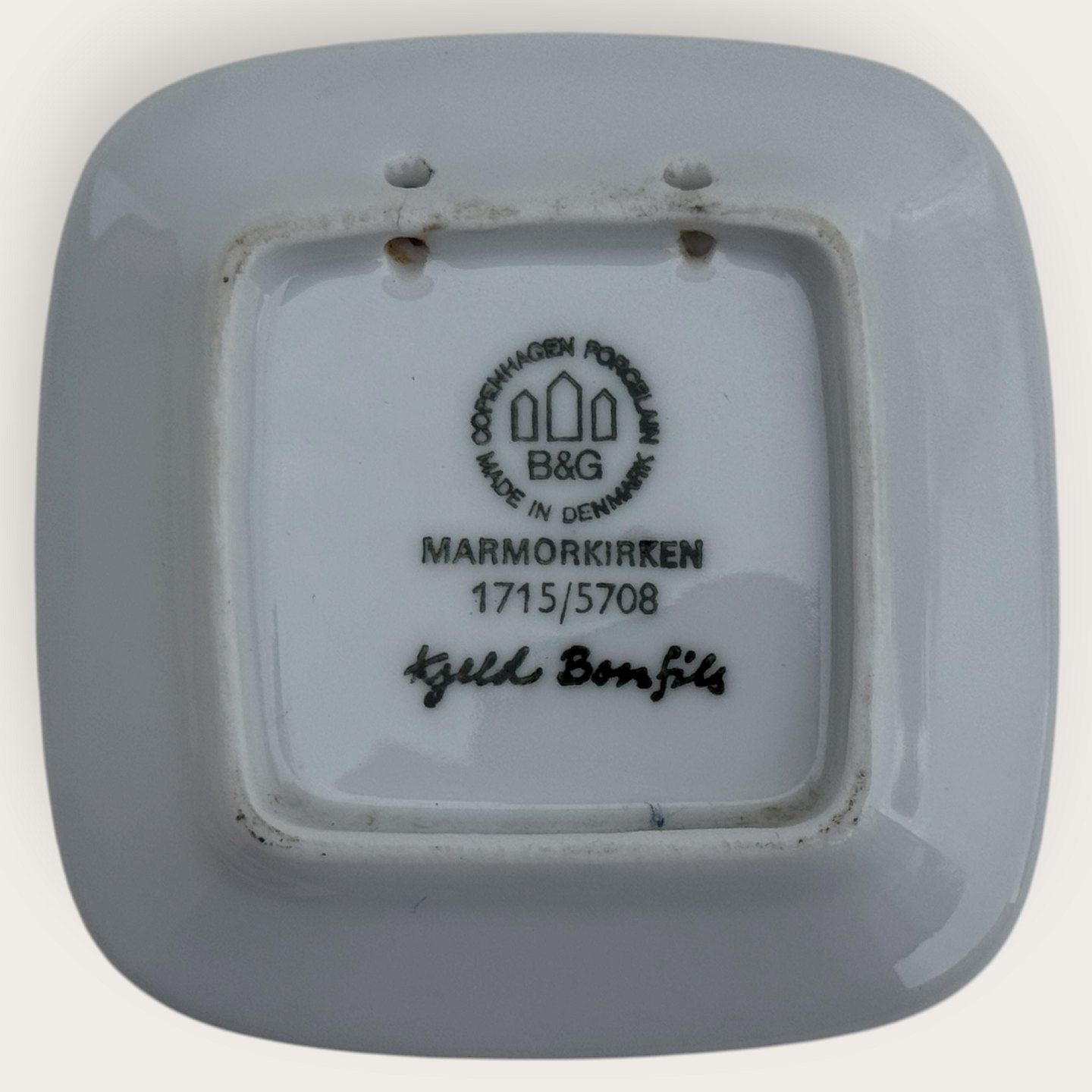 Bing & Grøndahl, Asiet, Marmorkirken København, Design Kjell Bonfils #1715/5708, 8x8cm *Pæn stand*