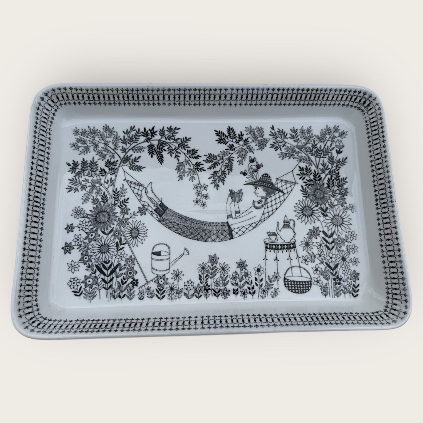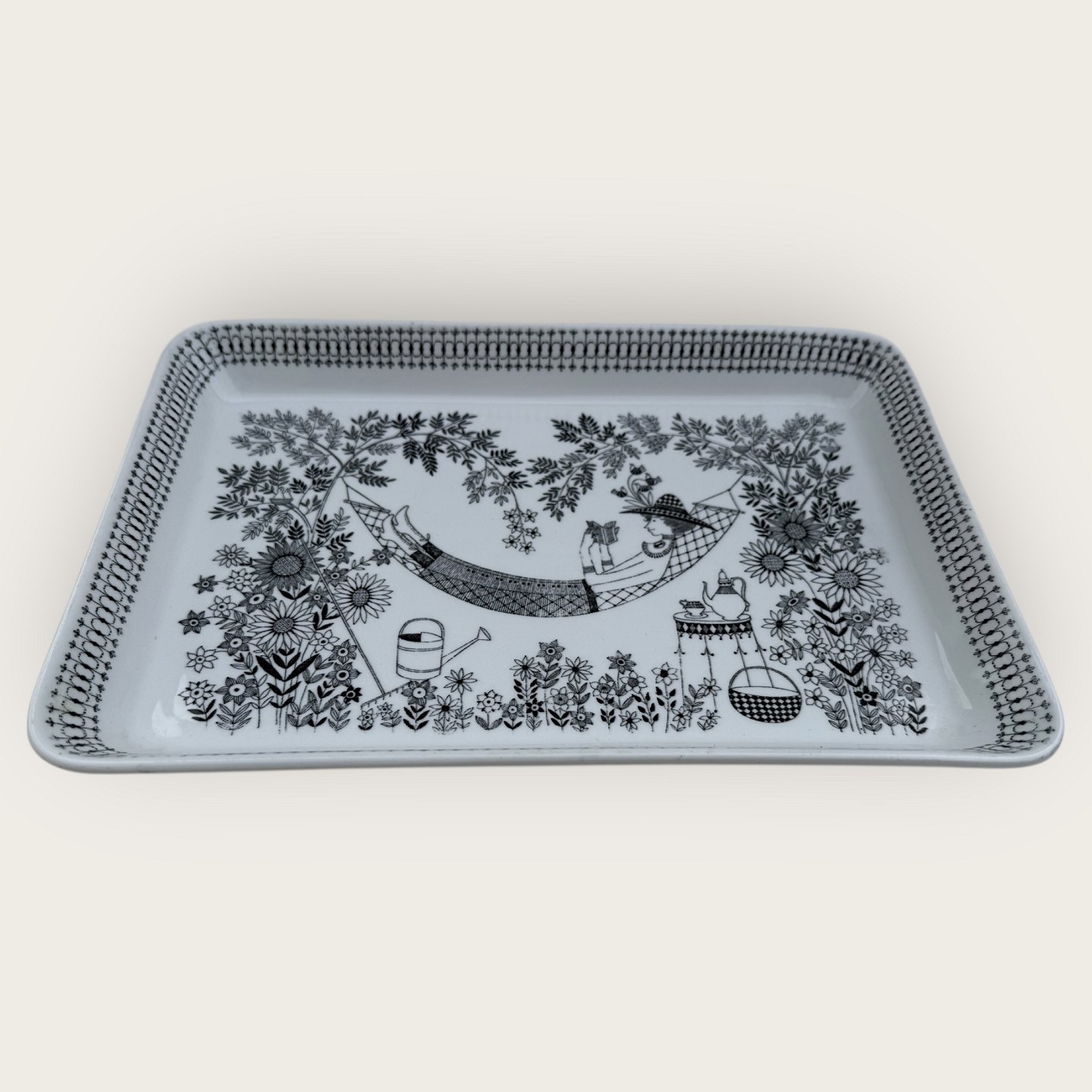 Arabia, Finland, Design Raija Uosikkinen, Emilia kollektionen fra 1959 med sommermotiver, 31x21cm *Pæn stand*