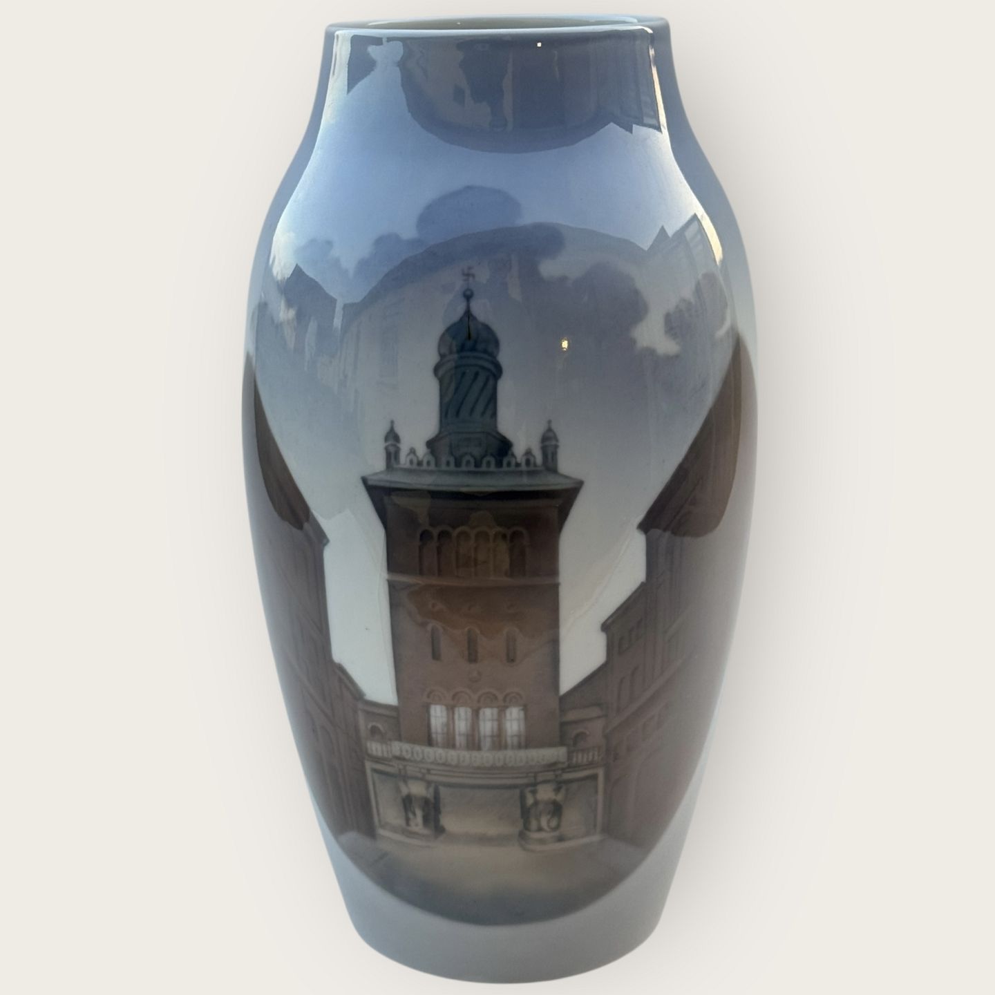 Bing & Grøndahl, vase med Carlsbergs elefantport, givet som jubilæumsgave til medarbejdere på Carlsberg #243, 24cm høj, 1.sortering *Pæn stand*