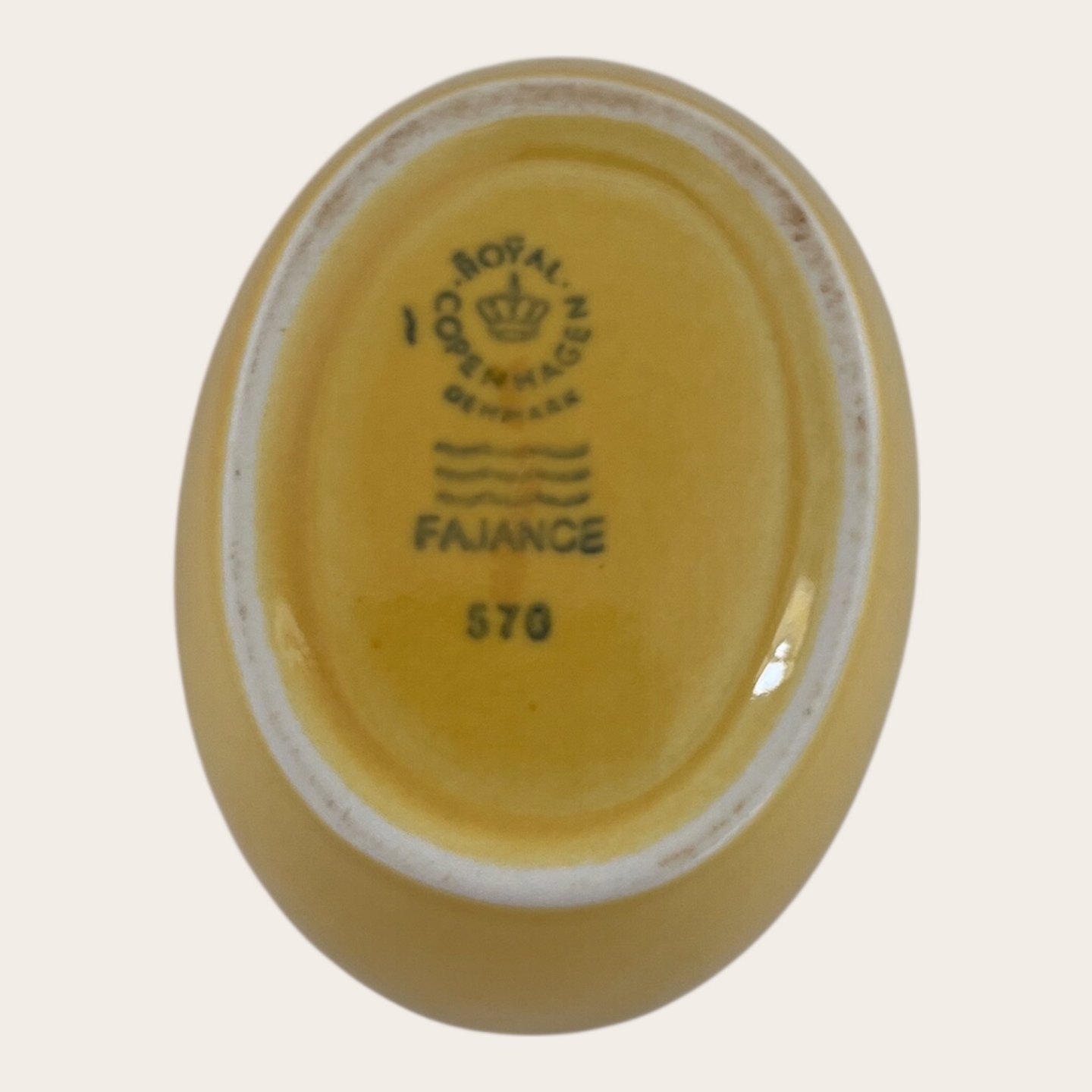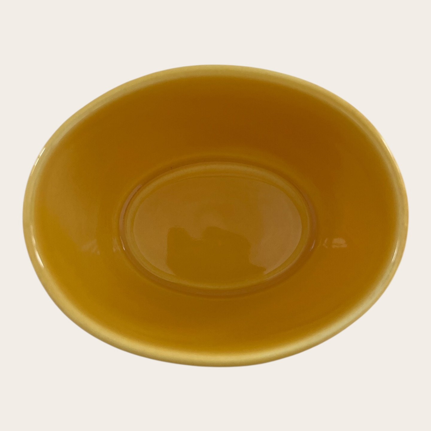 Royal Copenhagen, Aluminia, Ursula, Oval skål #570, Gul, 8,5cm lang, 6,5cm bred, 5cm høj, Design Ursula Munch Petersen, 2. sortering *Pæn stand*