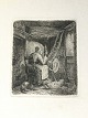 Radering af Erling Eckersberg - Køkkeninteriør med et ungt par. |