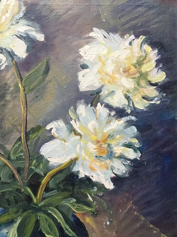 Aksel Lundgreen (1908-89): Blå vase med hvide pæoner. Olie på lærred. Sign.: A. Lundgreen 58x46 (64x53)