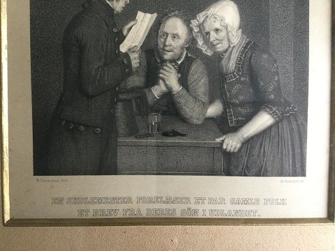 "En Skolemester foreklæser er par Gamle Folk, et Brev fra deres Søn i Udlandet"