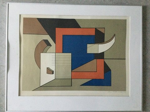Lun Tuchnowski (1946-2018): Komposition 1973 Litografi på papir. Sign.: Lun Tuchnowski 73 Indrammet med passepartout (Enkelte pletter på passepartout). 45x62 (61x75) 16504