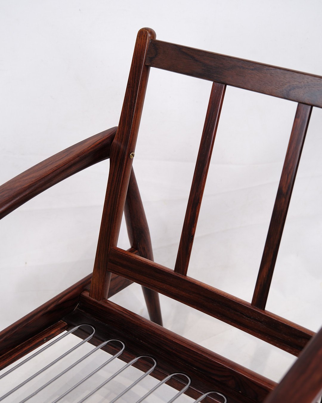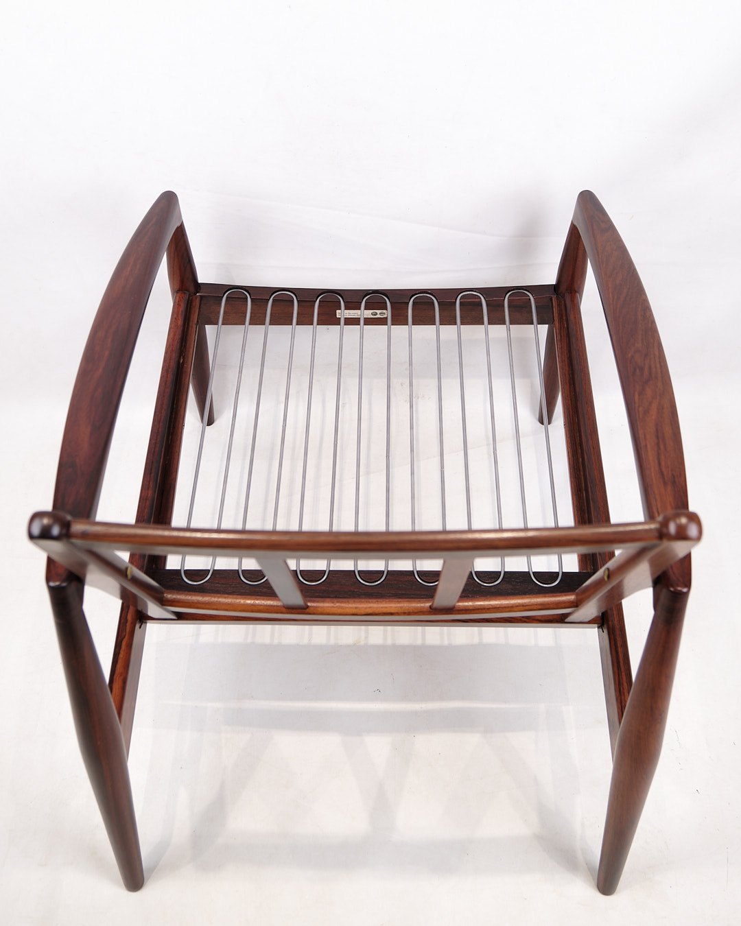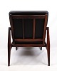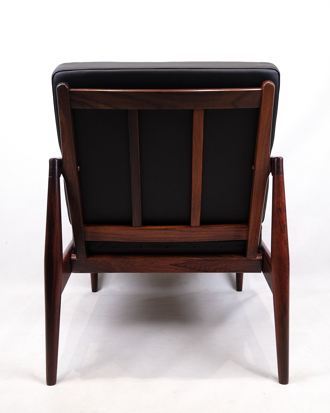 SolgtKai Kristiansen “Papirknivstolen”, model 121. Palisander og sort læder. Produceret af Magnus Olesen, 1950’erne.