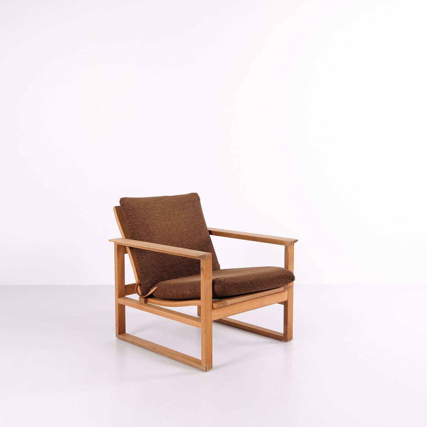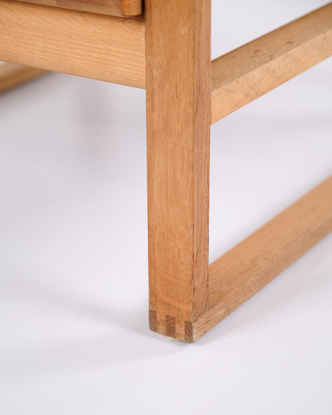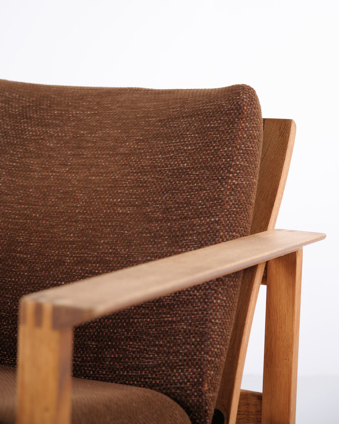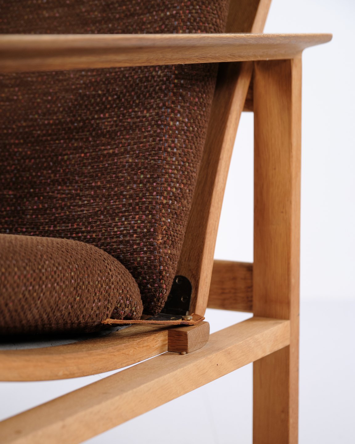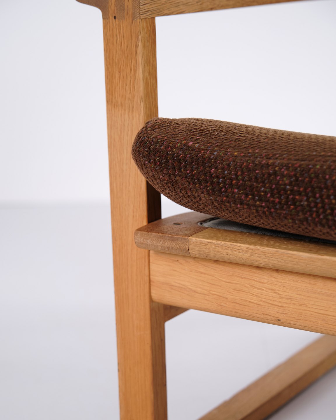 Børge Mogensen slædestol BM2256 fra Fredericia Stolefabrik. Egetræ med brune hynder.