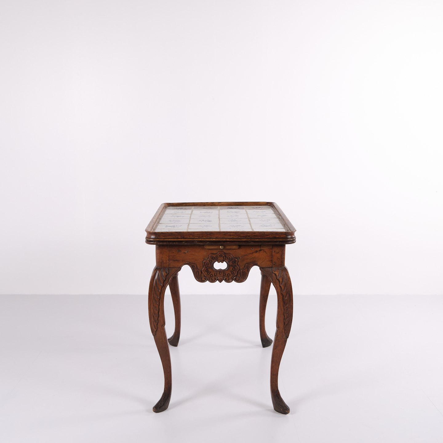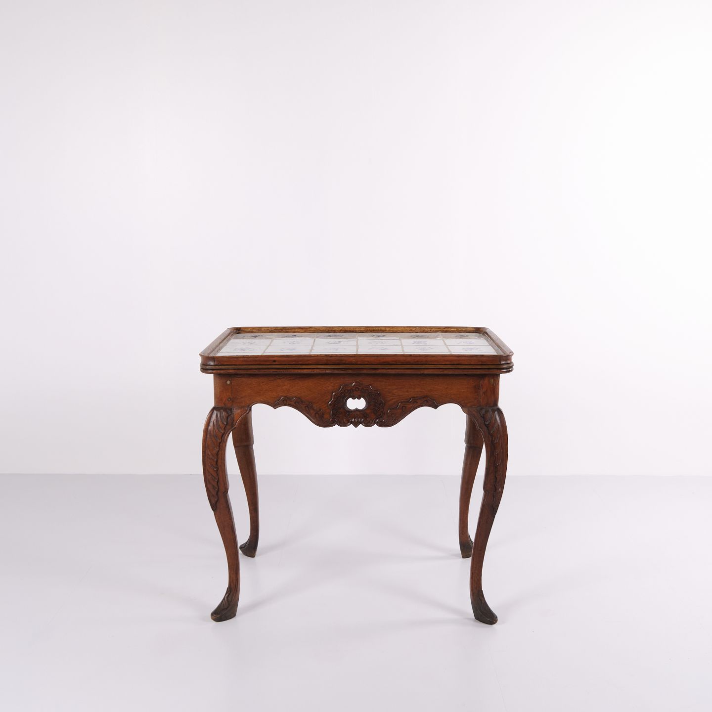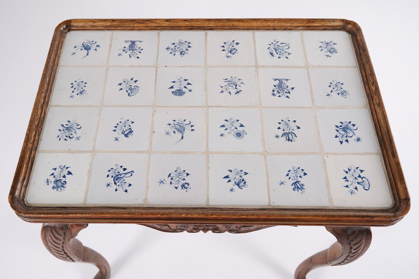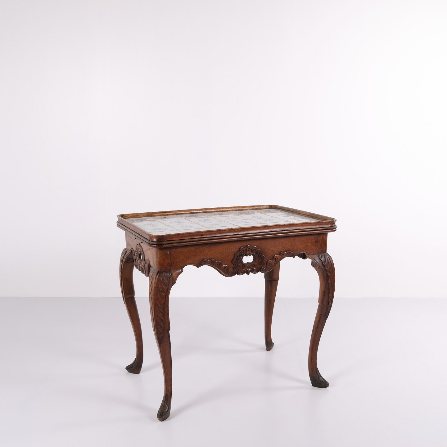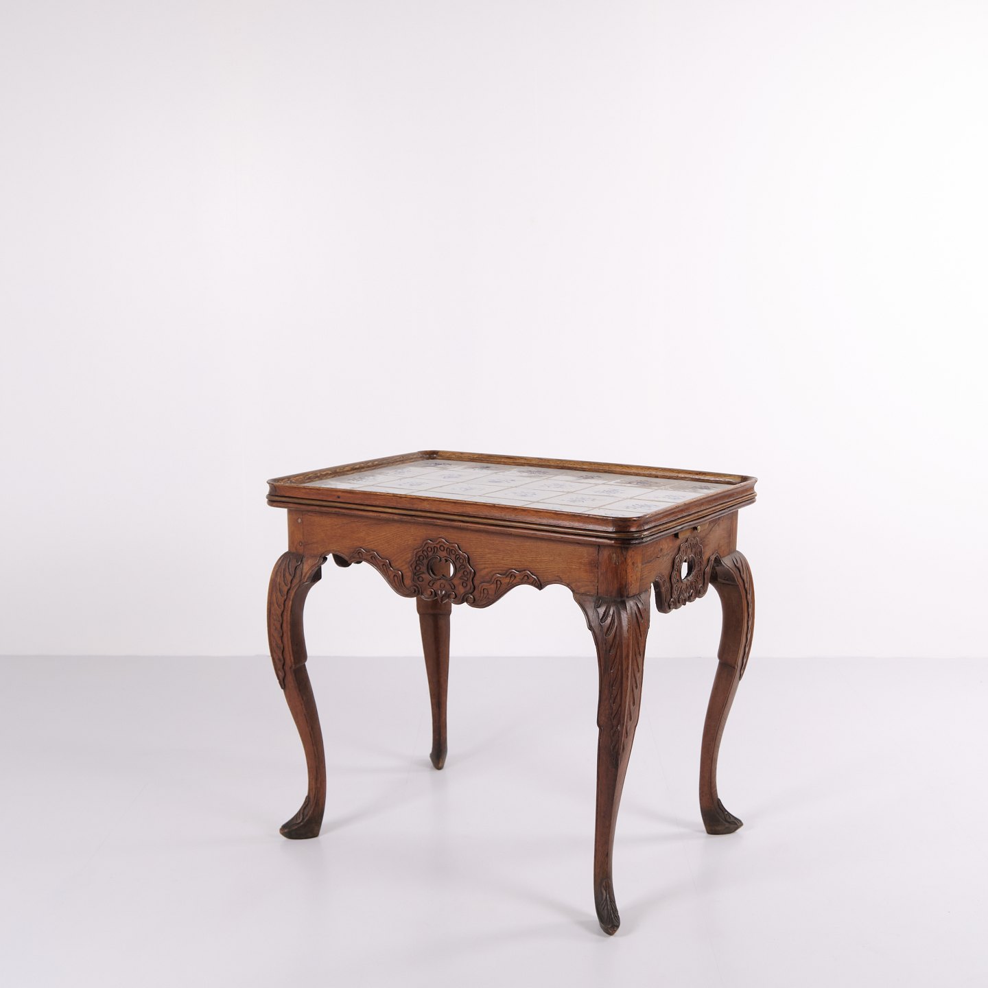 Antikt Flisebord - Patineret Egetræ - Rokoko Stil - Hollandske fliser - 1780
