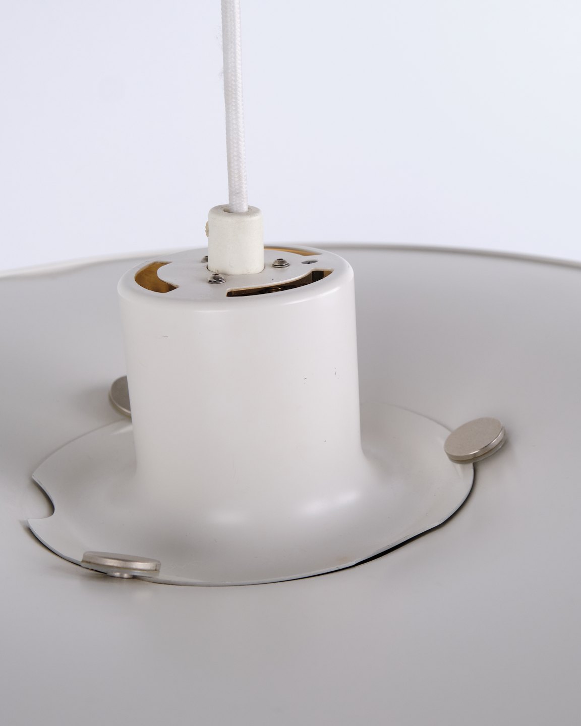 Charlottenborg pendant, model PH 5-4½, designed by Poul Henningsen and produced by Louis Poulsen in the 1980s. The lamp is based on the 4-shade system introduced in 1931 with the purpose of increasing light output and creating more efficient illumination in the room. The construction directs a greater amount of light horizontally, providing better lighting of walls and surroundings compared to traditional 3-shade lamps.
