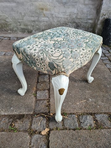 Hvidmalet taburet fra 1940'erne I rokoko stil og med polstret sæde. Fremstår pæn, velholdt og udmærket stabil.