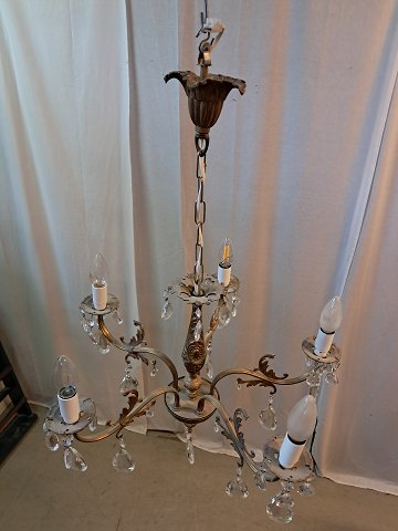 Lysekrone i metal med glasprismer, fra 1950erne.