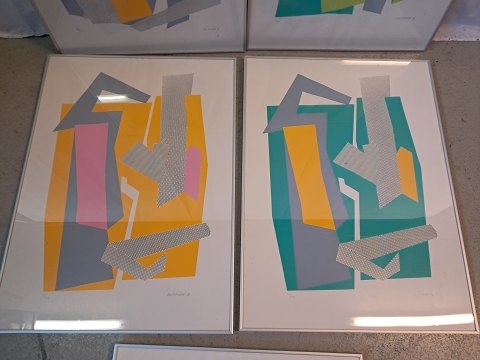 5 Grafiske tryk i alurammer, signeret af Lise Honore, fra 1980erne.